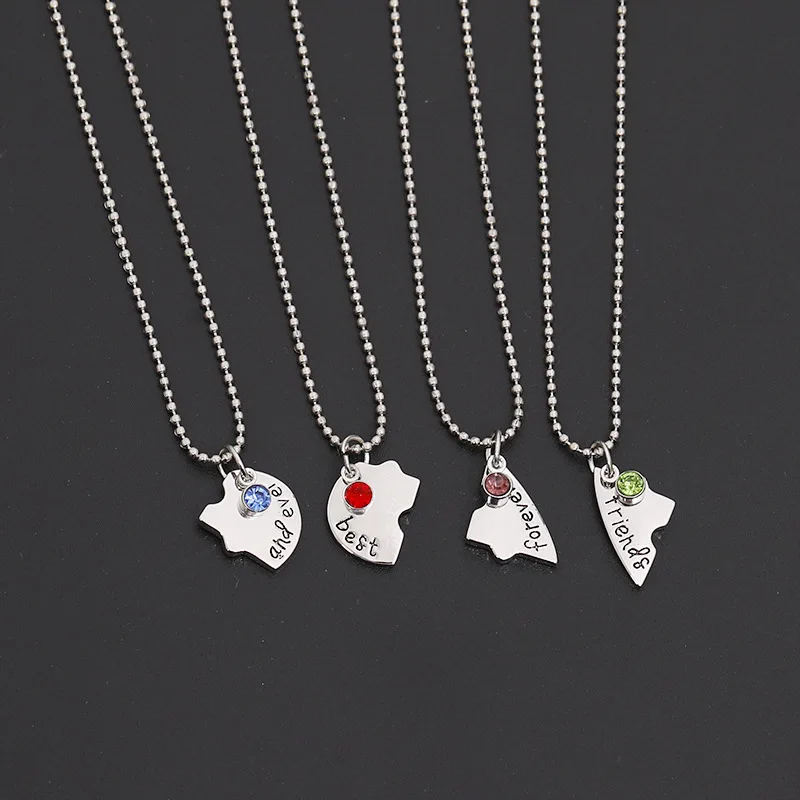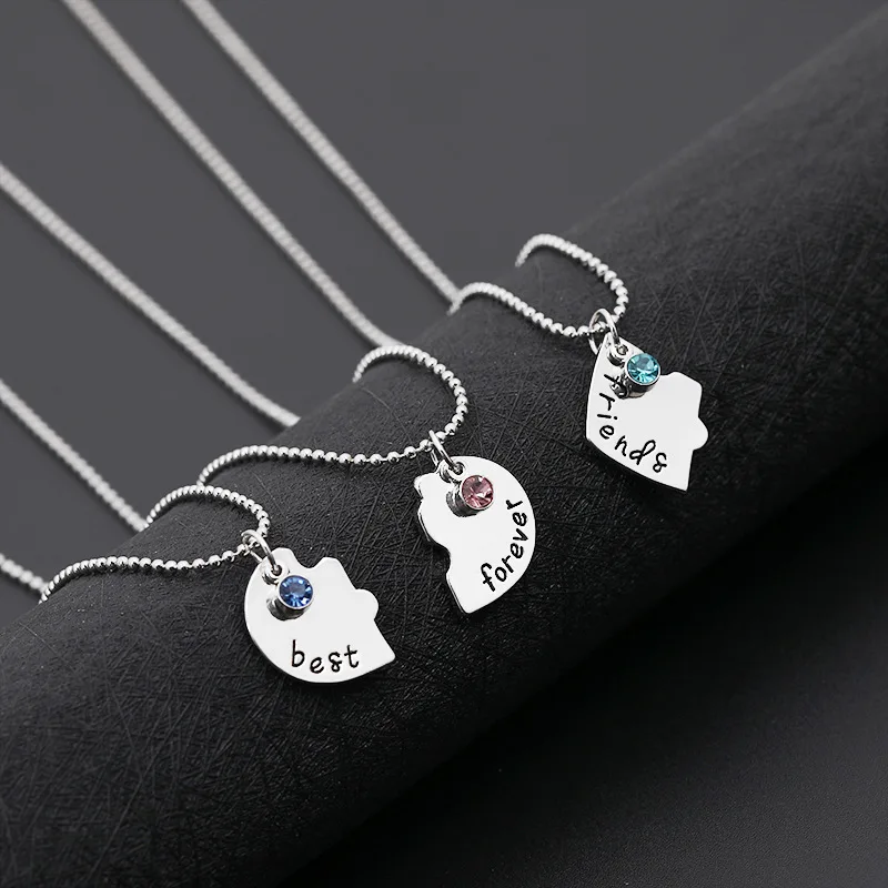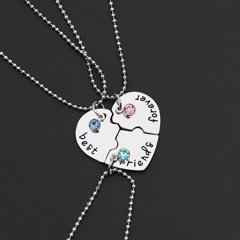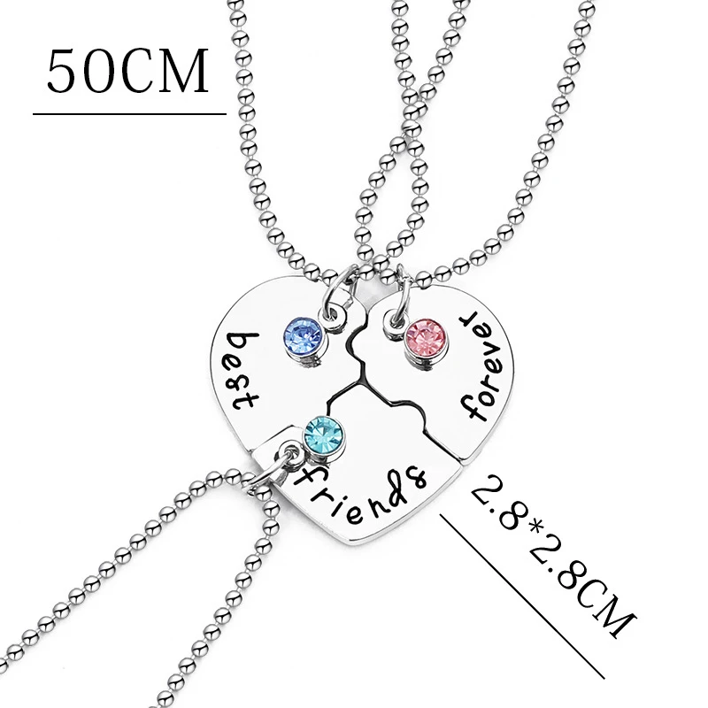 3 Pieces / Set paired Of Friends Forever Letter Pendant Commemorative Friendship 3 Color Rhinestone Chain Necklace