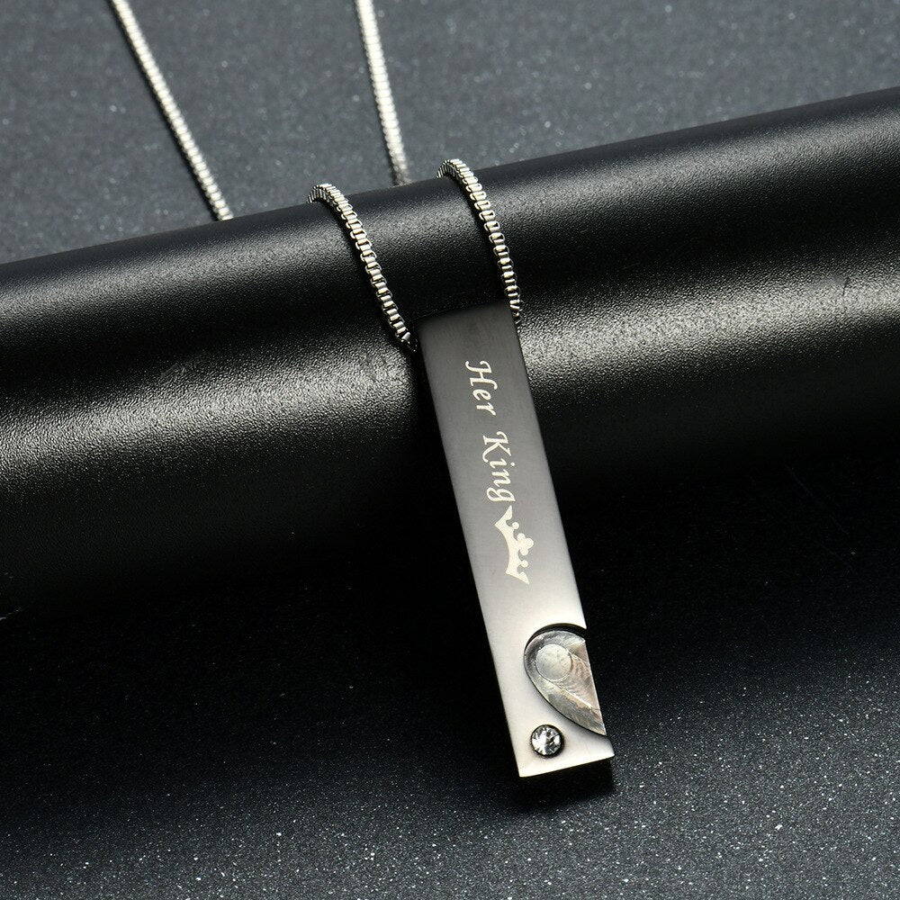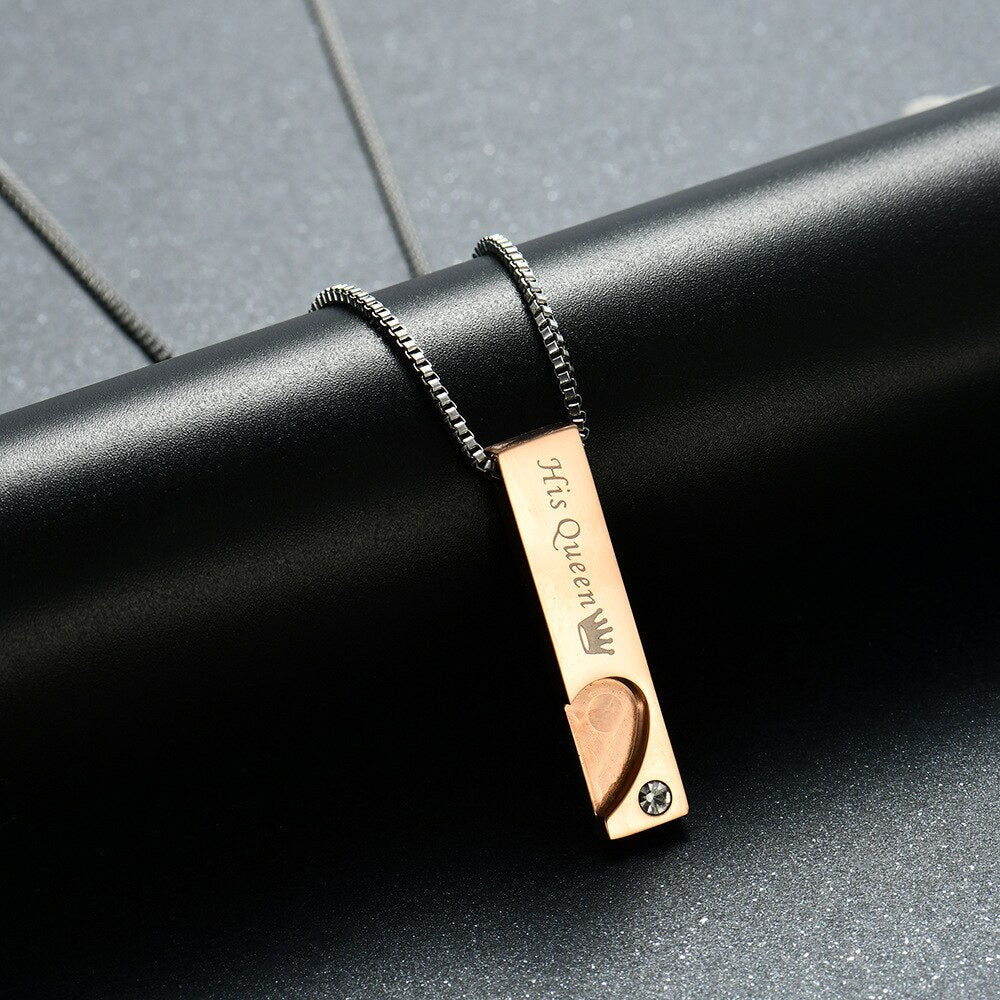 316L Stainless Steel Couple Necklace Her King His Queen Love Heart Titanium Steel Pendant Pair of Necklaces No Fade