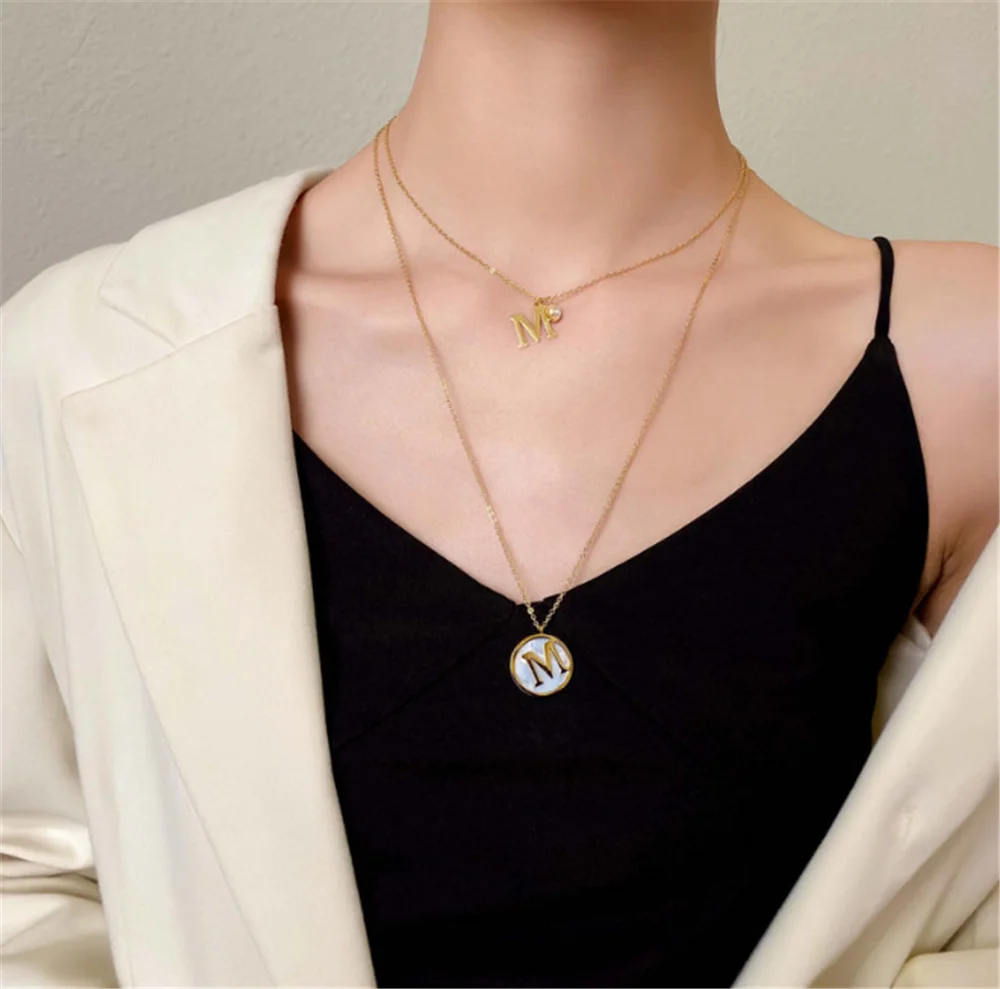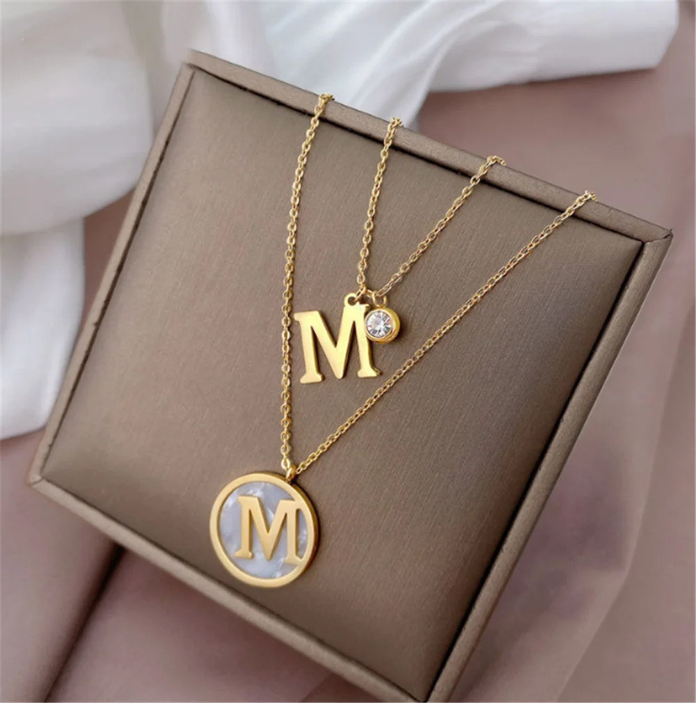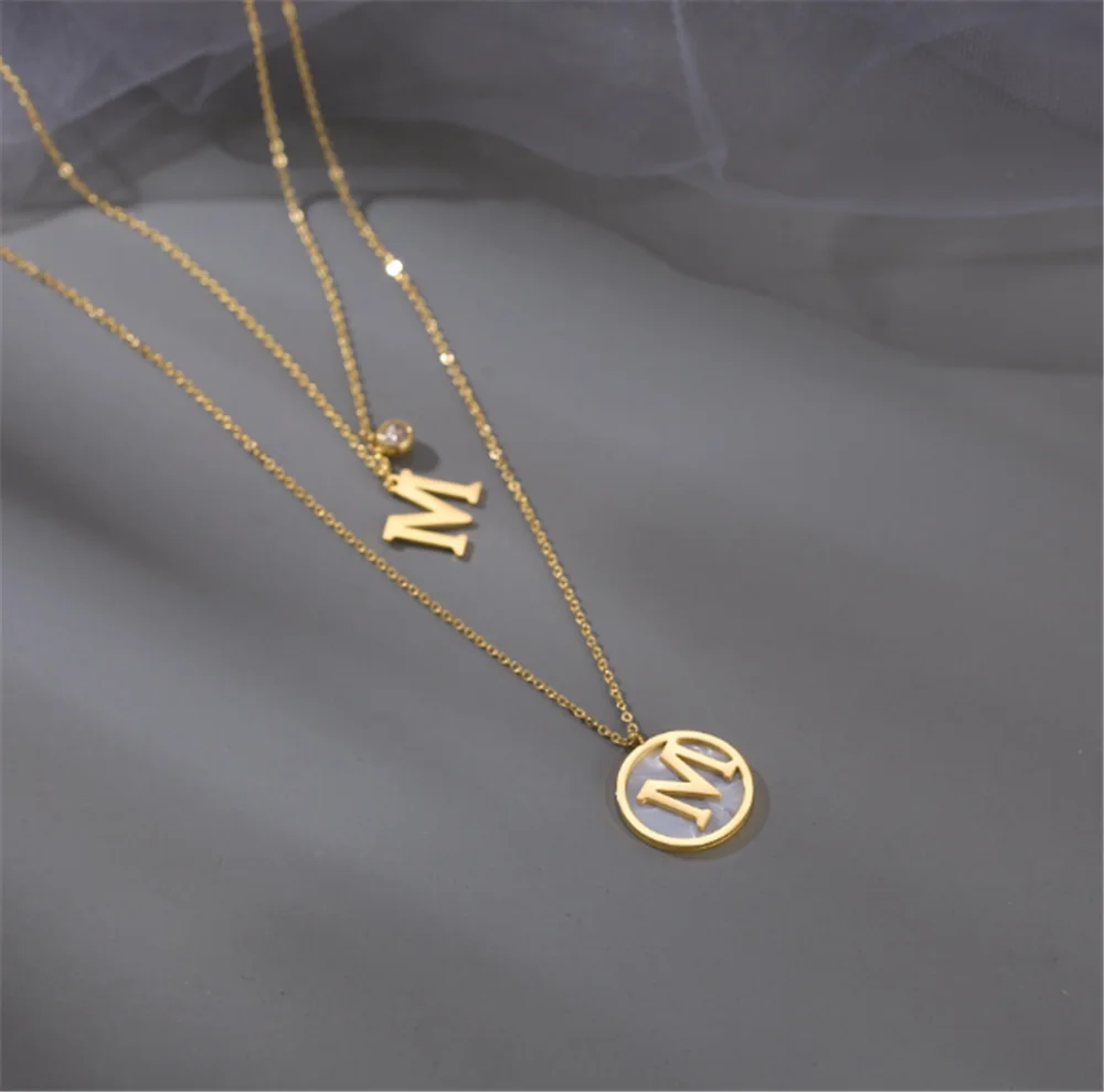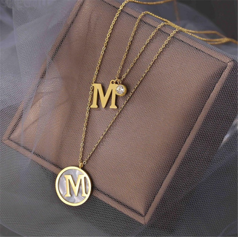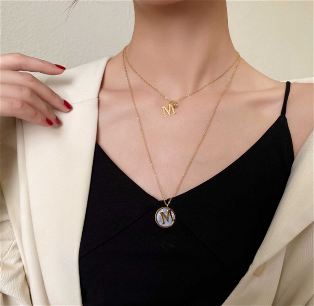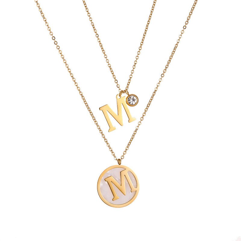 316L Stainless Steel Double Layered M Crystal Necklace Cadenas Mujer Choker Punk Neck Baratos Frete Gratis Chains Naszyjniki