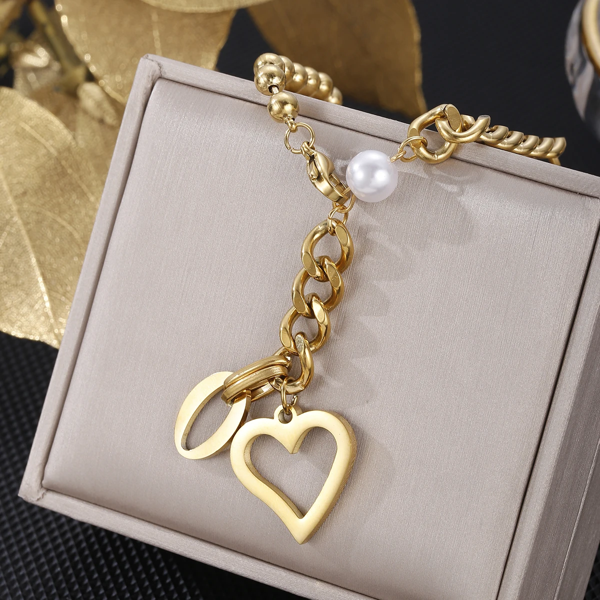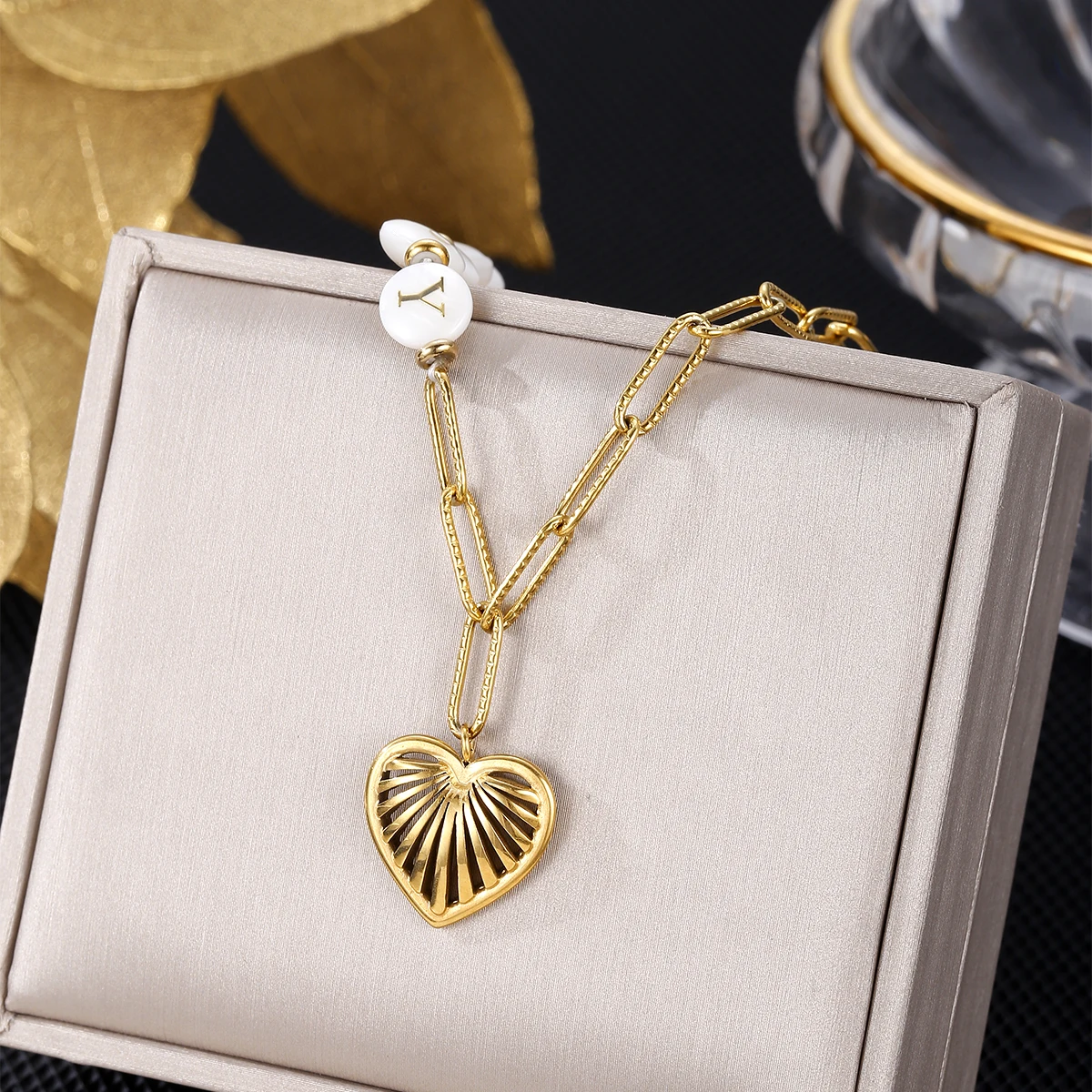 316L Stainless Steel Gold Color Heart Pearl Pendant Necklace For Women Punk Street Rustproof Neck Jewelry Party Gift