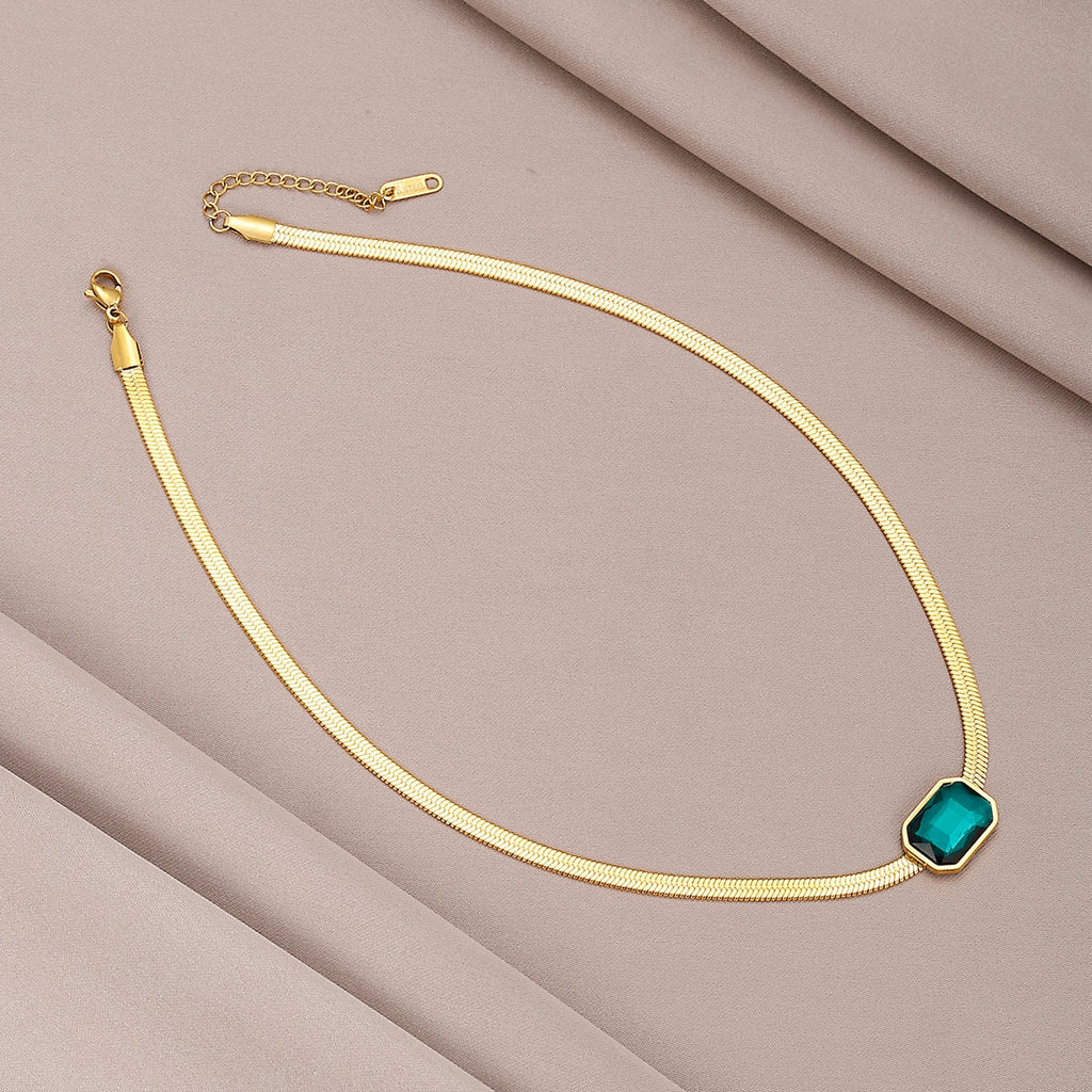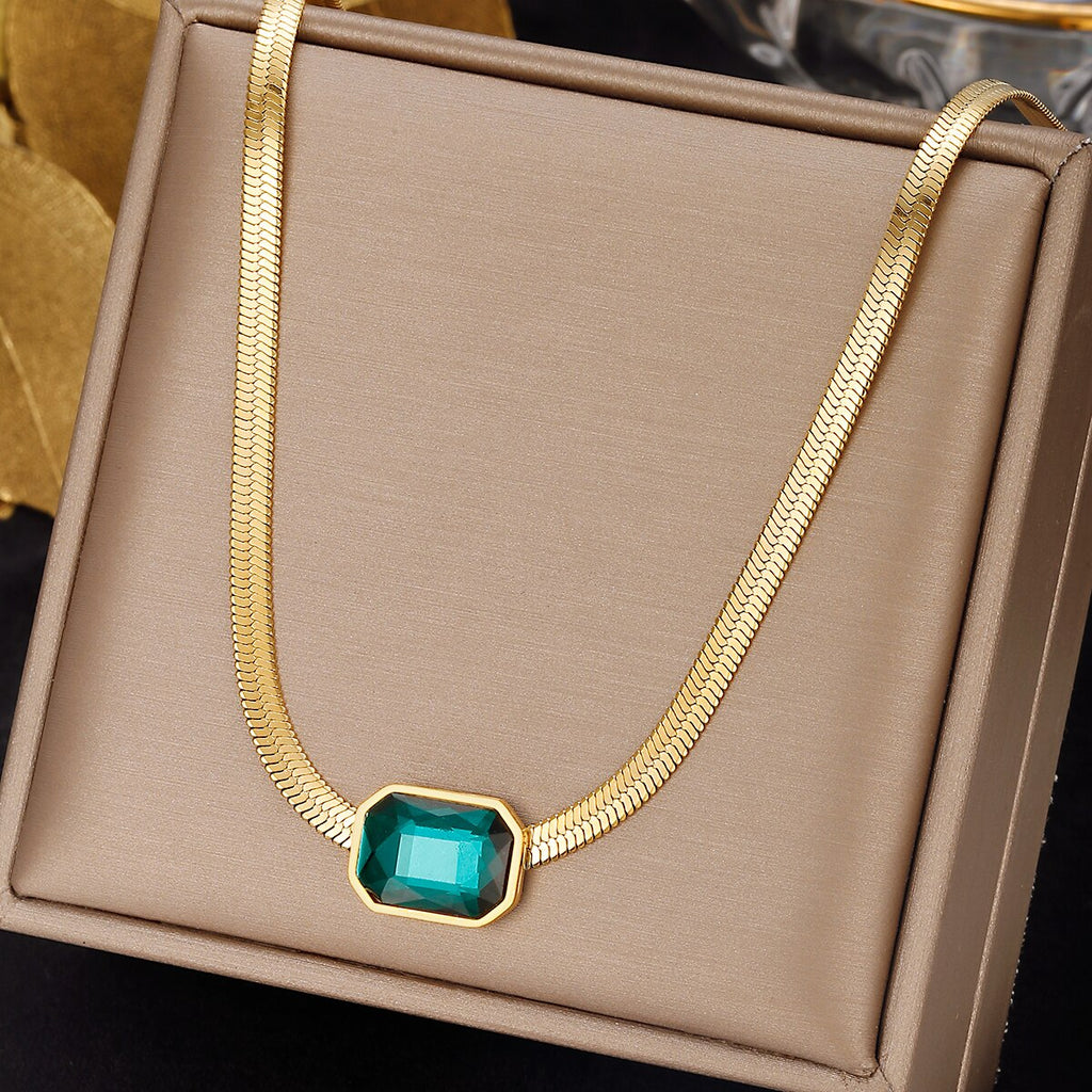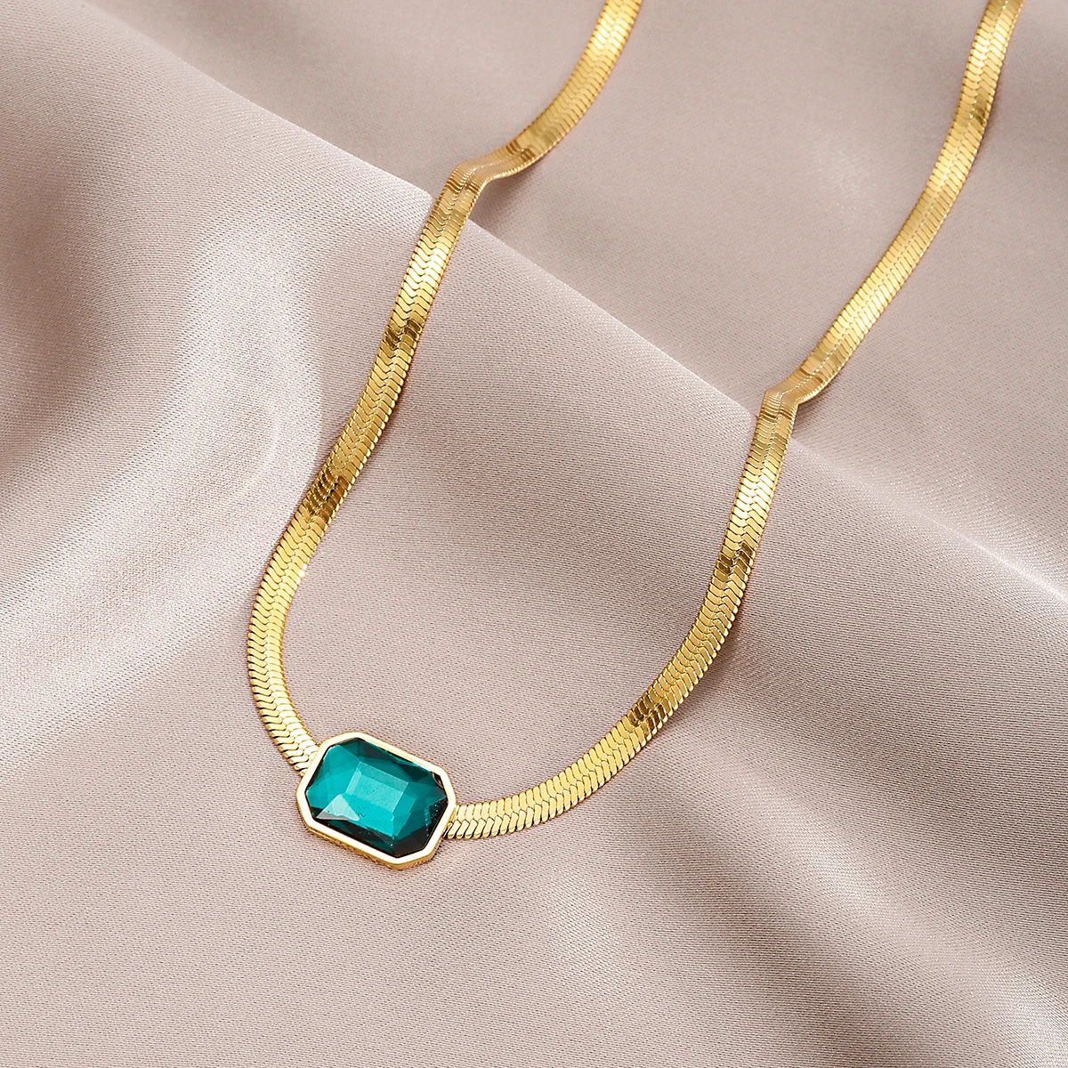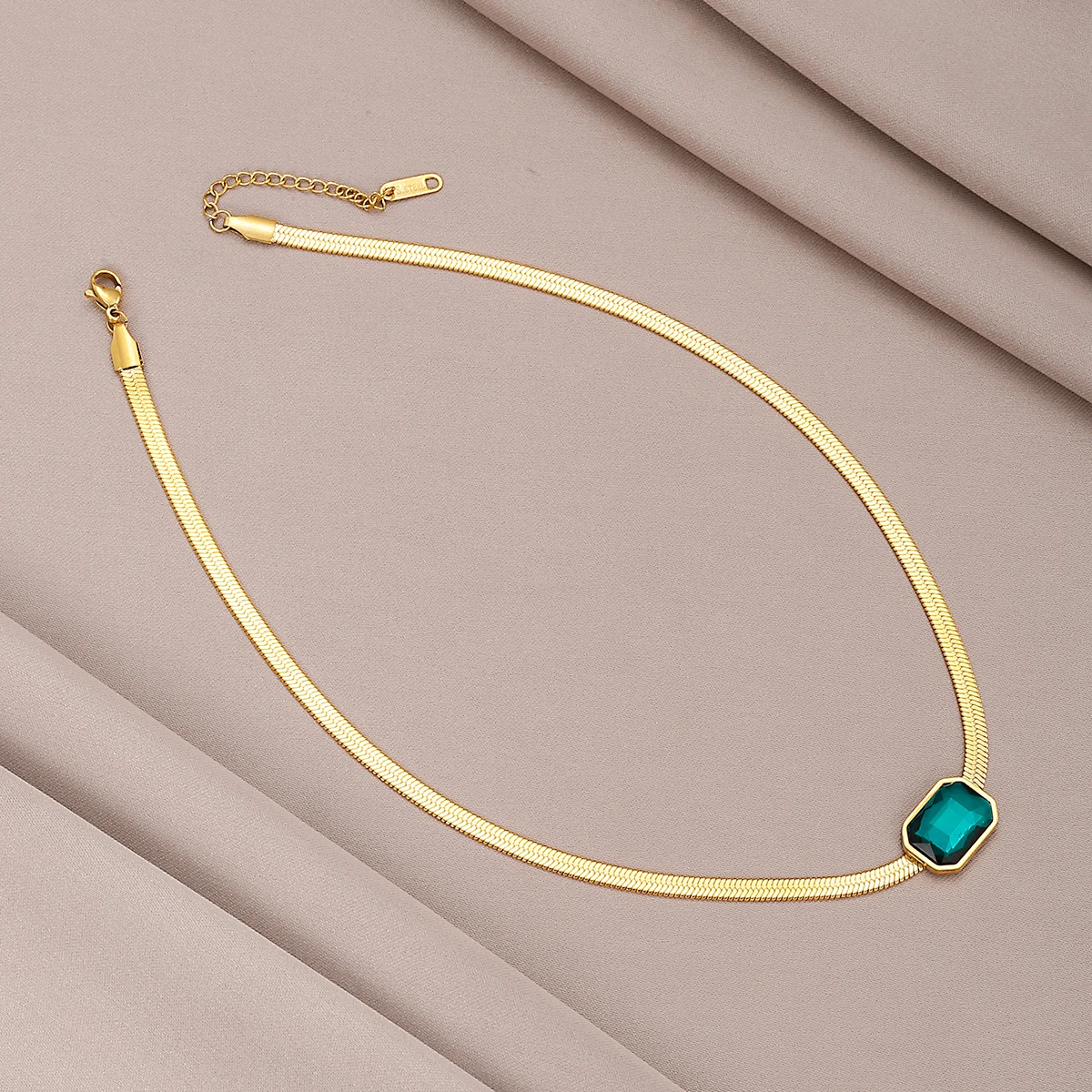 316L Stainless Steel Green Cubic Pendant Necklace For Women Trend Snake Chain Girl Neck Crystal Jewelry Party Gift Bijoux
