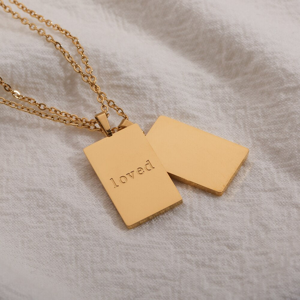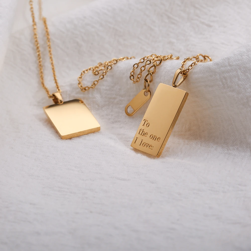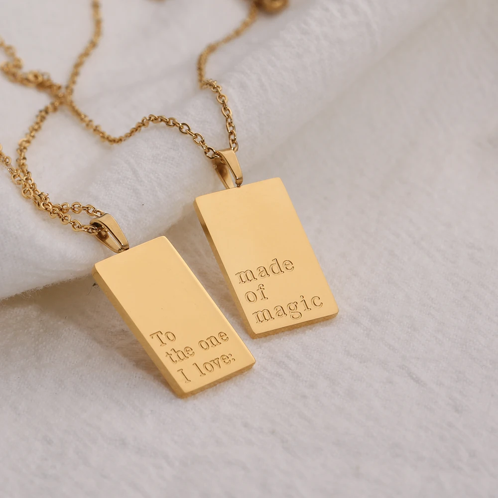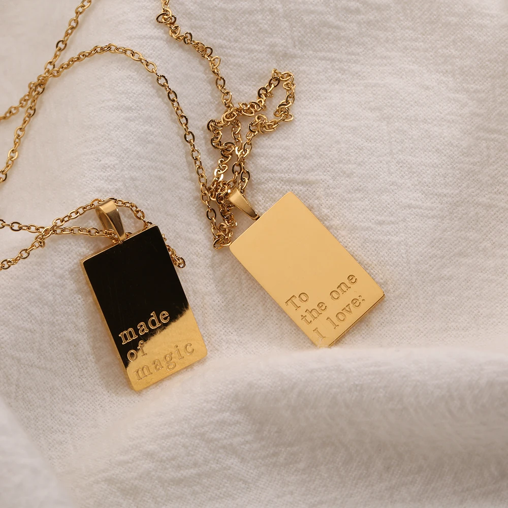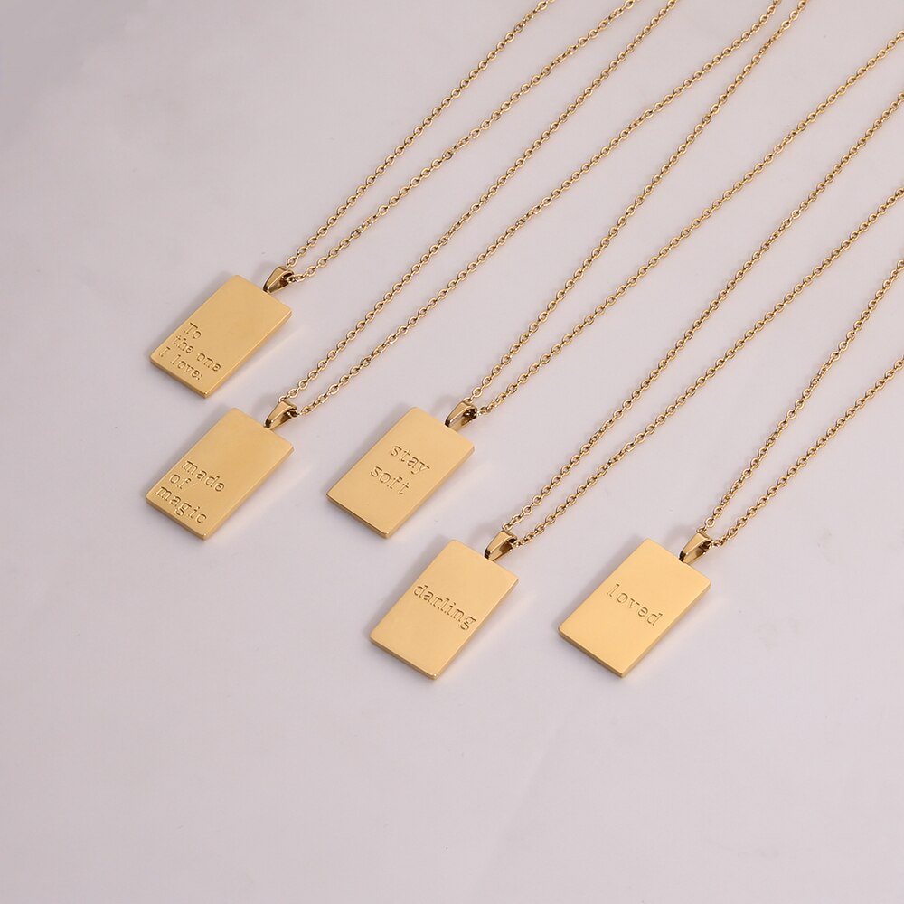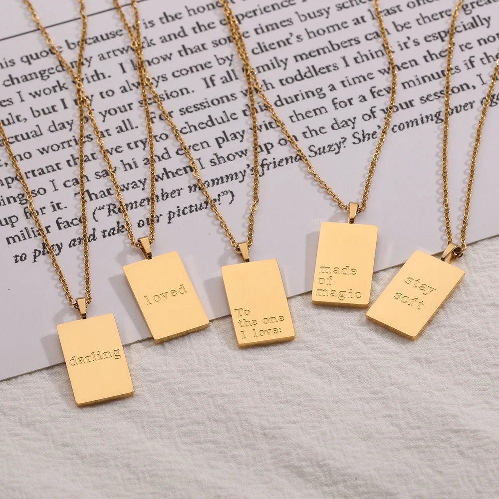 316L Stainless Steel Inspirational Necklace Gold Plated Engraved Letters Square Pendant Beads Chain Necklace For Women Girls