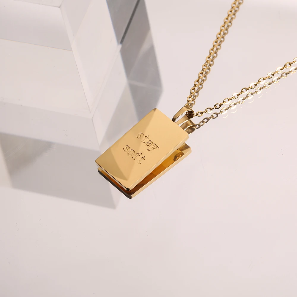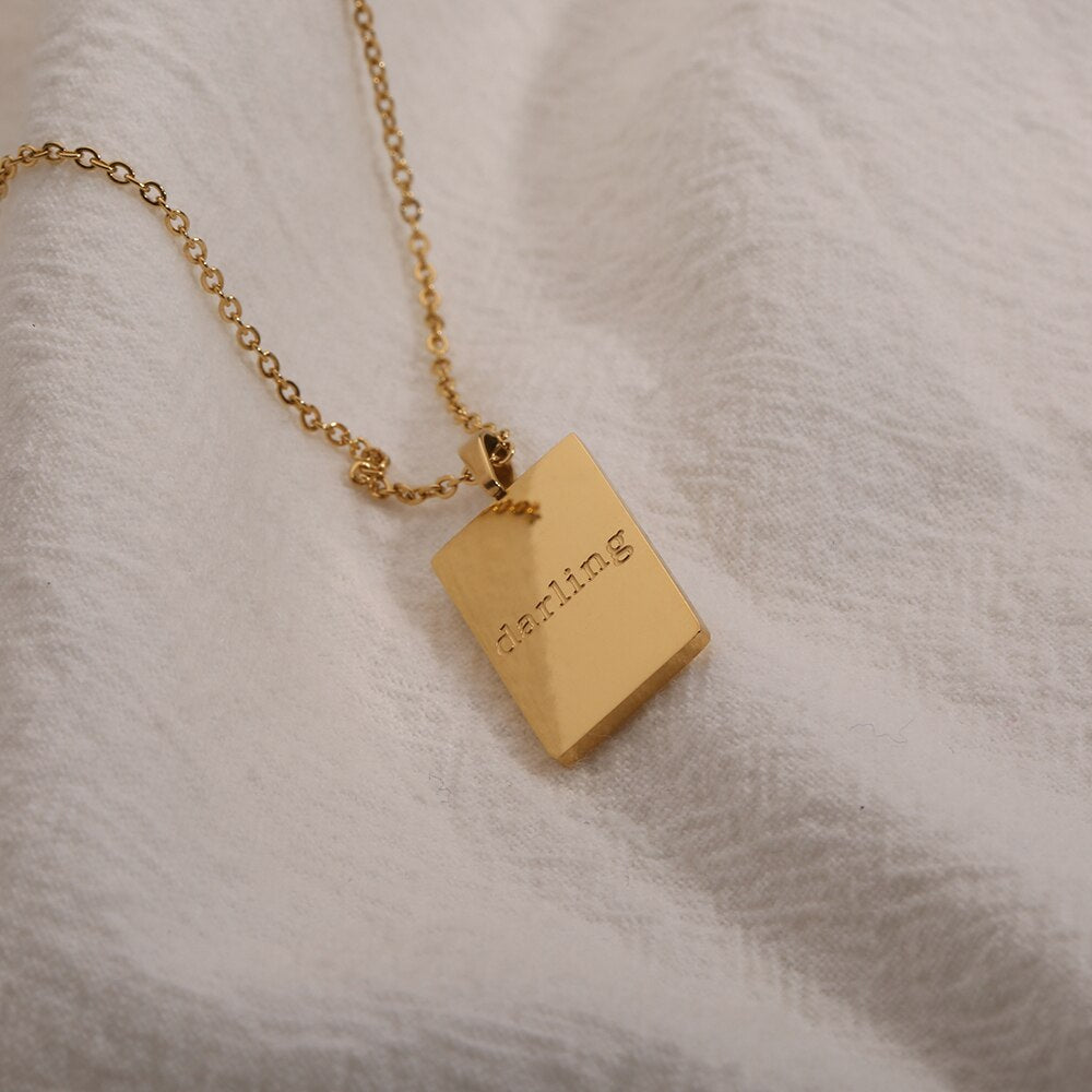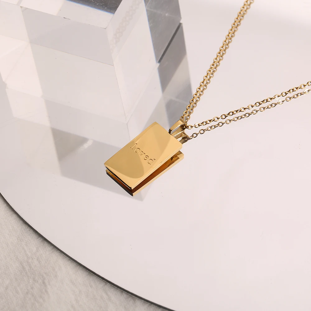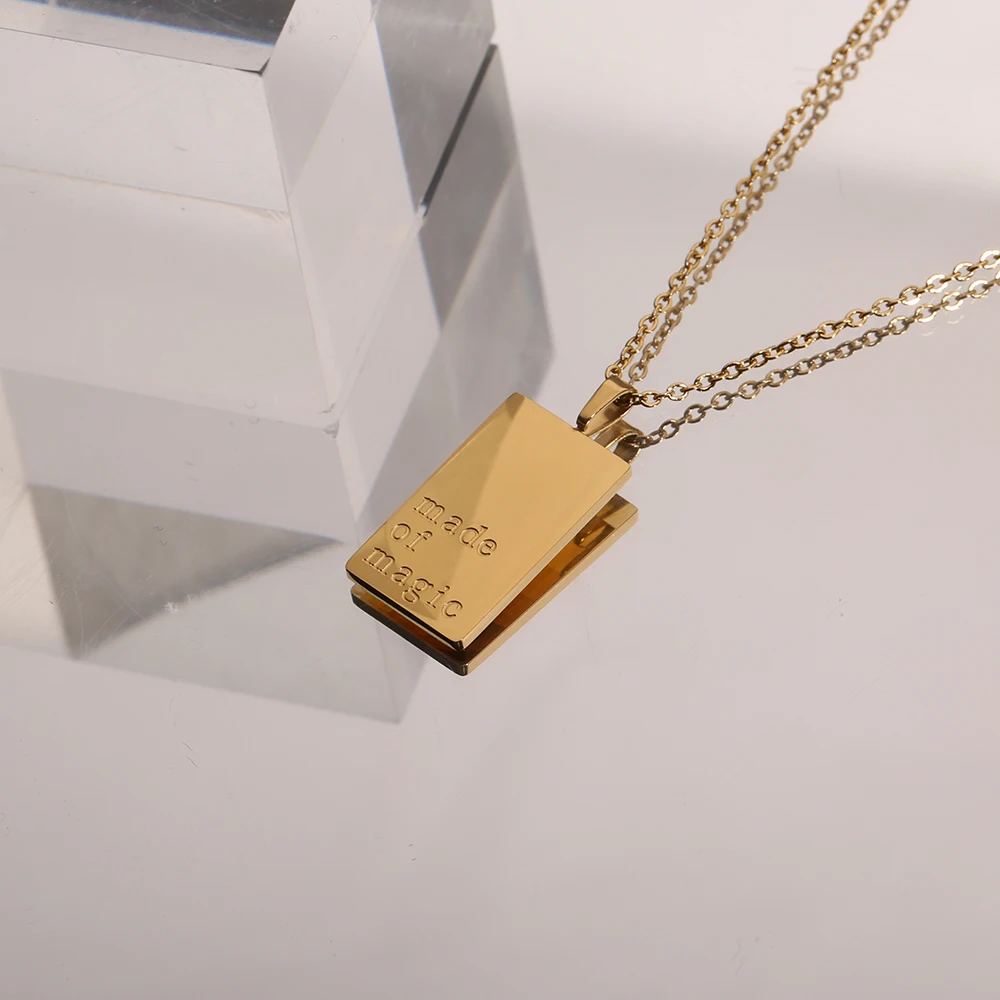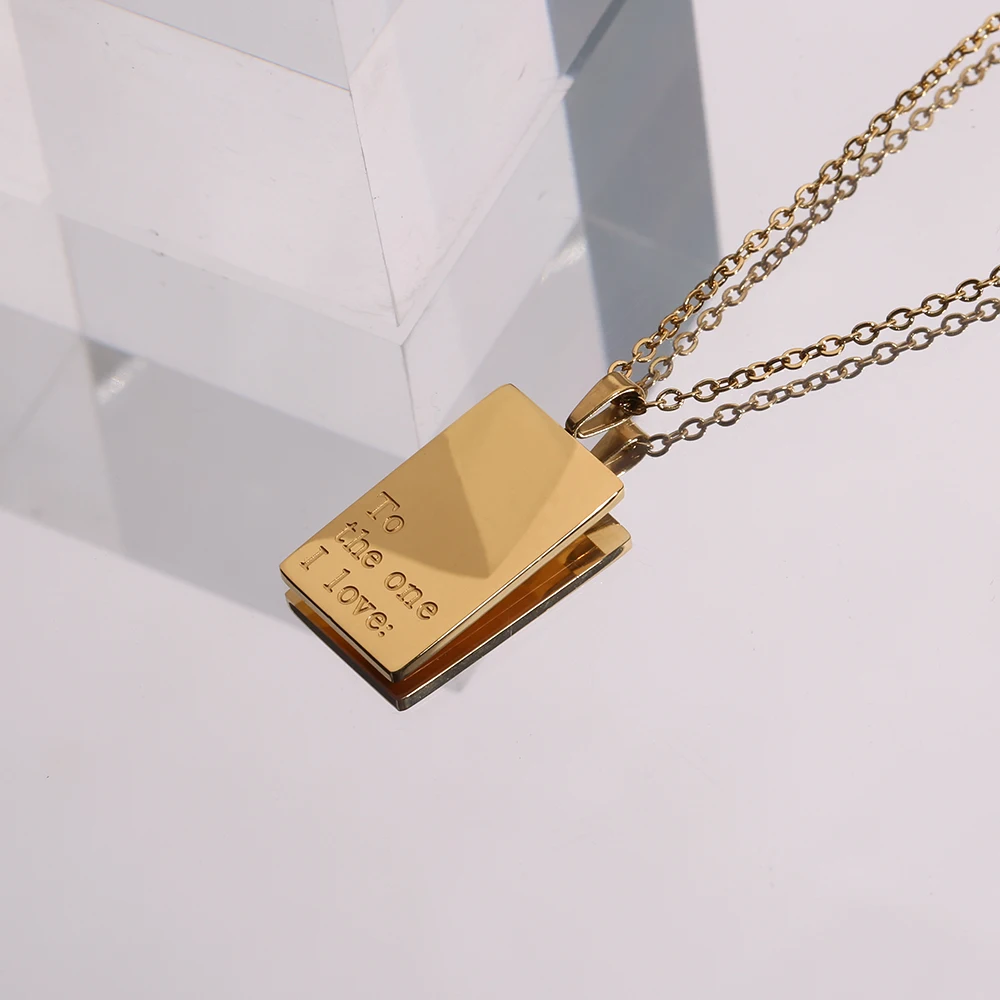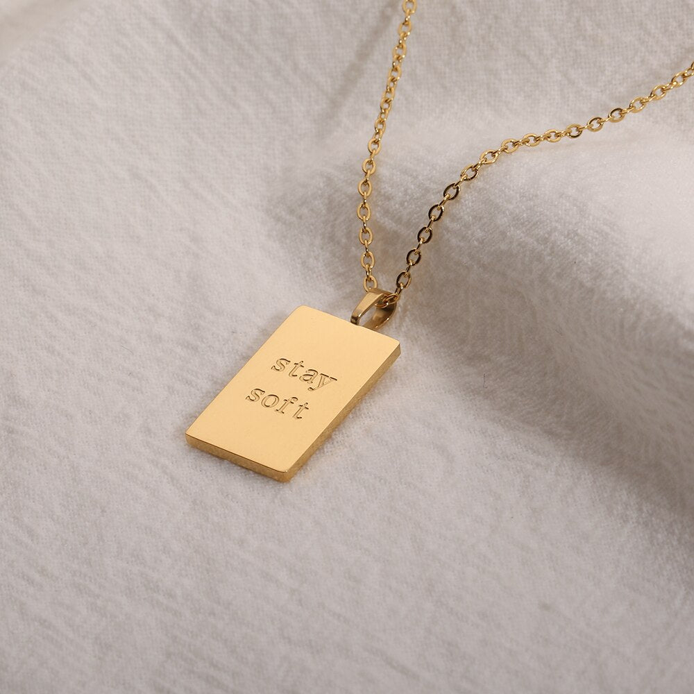 316L Stainless Steel Inspirational Necklace Gold Plated Engraved Letters Square Pendant Beads Chain Necklace For Women Girls