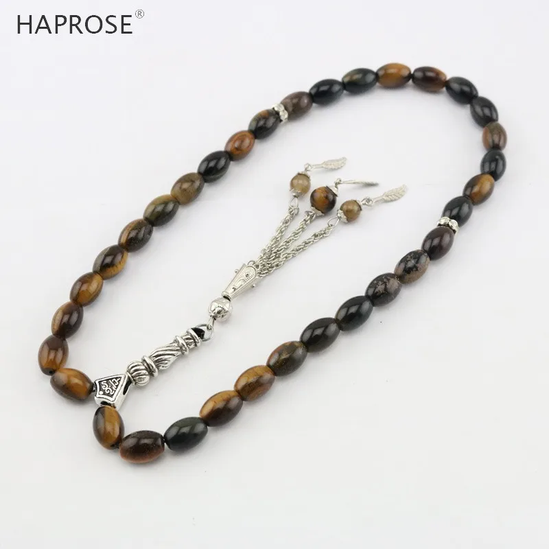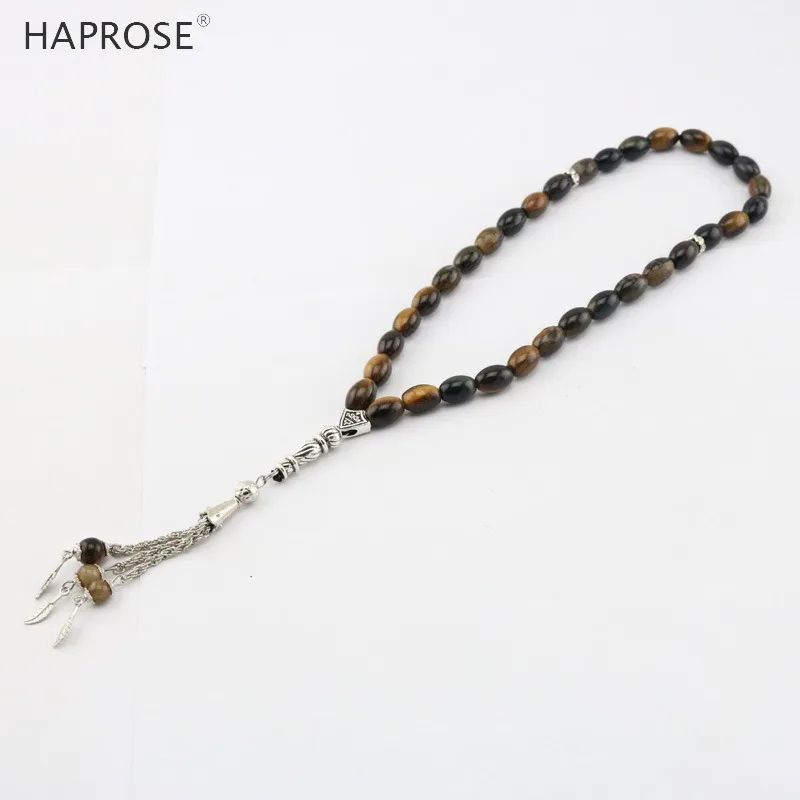 33 beads africa tiger eye Stone round Shape 8*12mm Tasbih Allah rosary prayer beads Rice shape Ethnic style bracelet