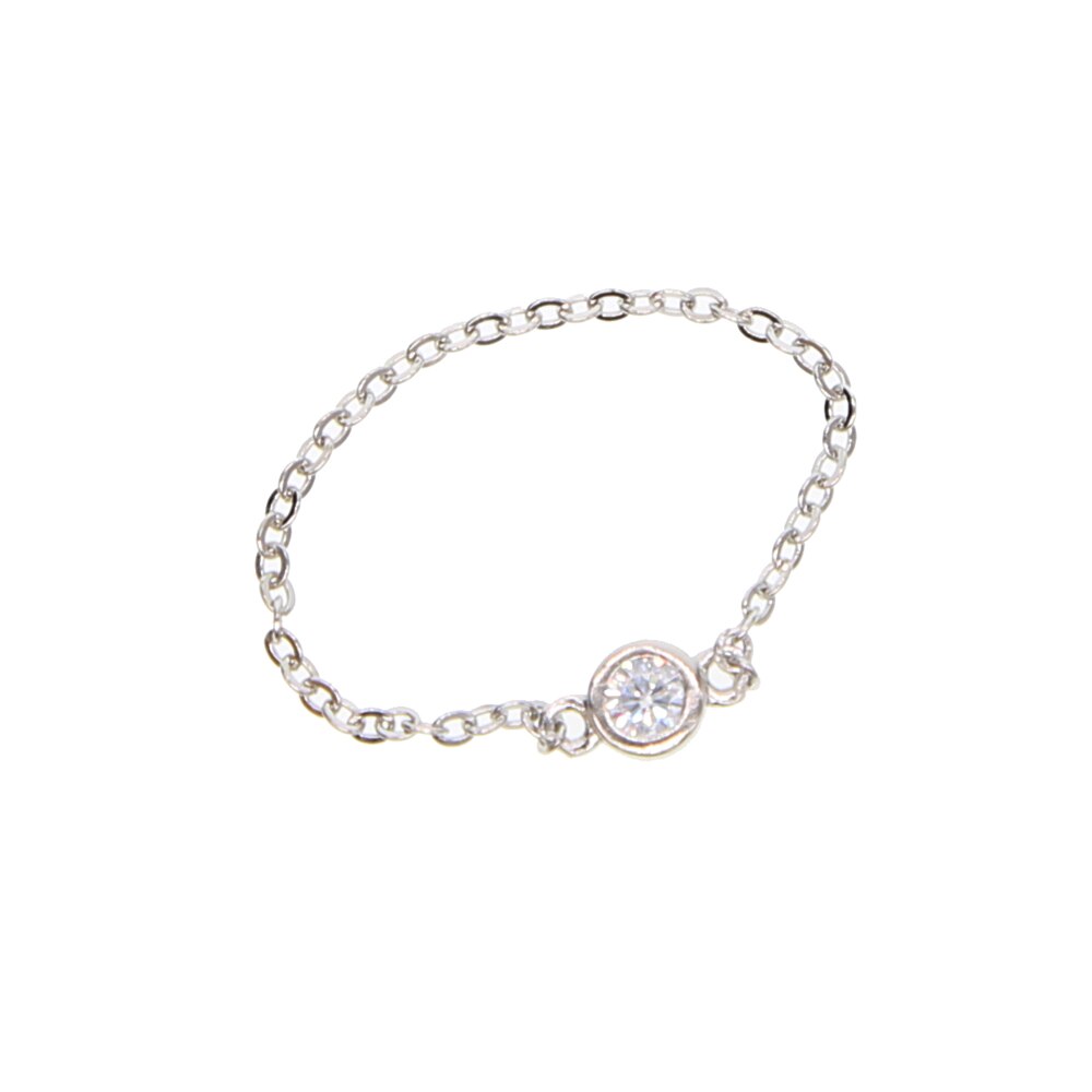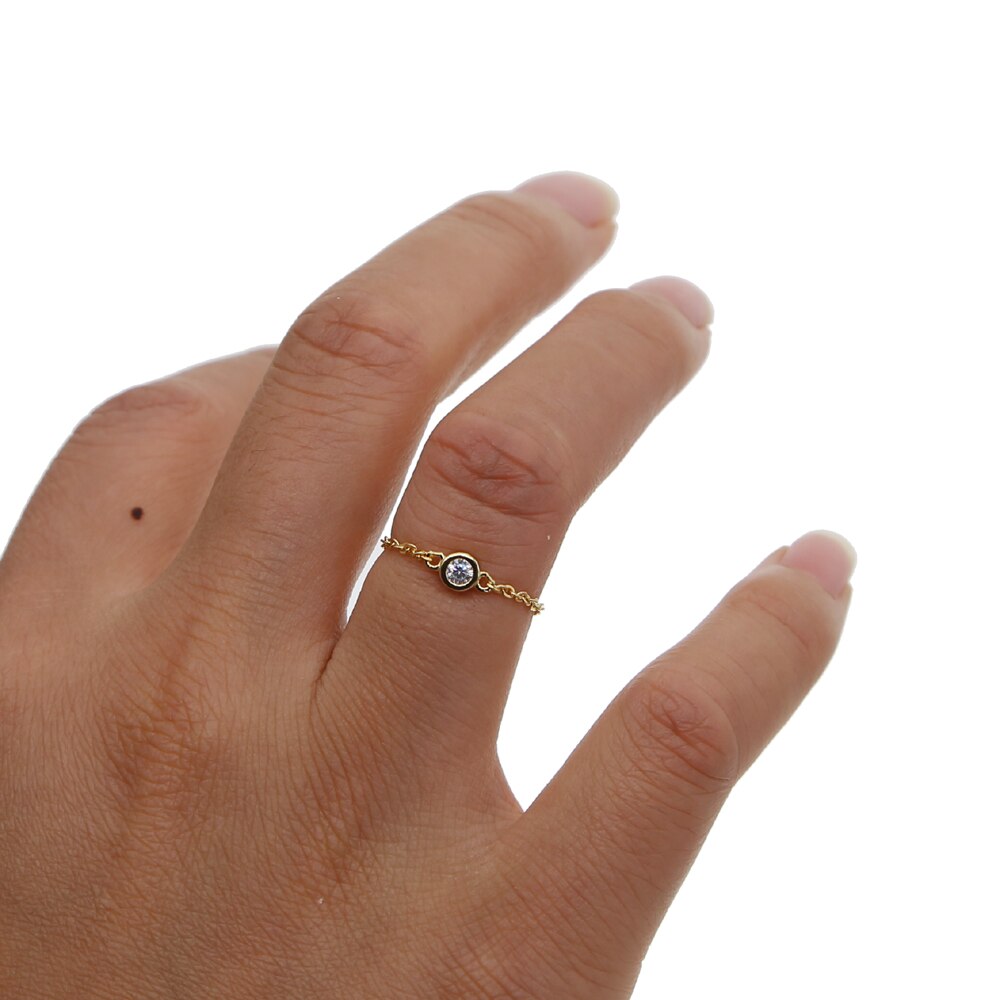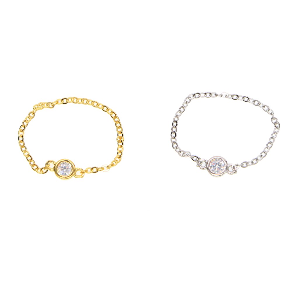 3MM bezel round cz 5mm three cz bar charm simple chain band 925 sterling silver ring size 6 7 8