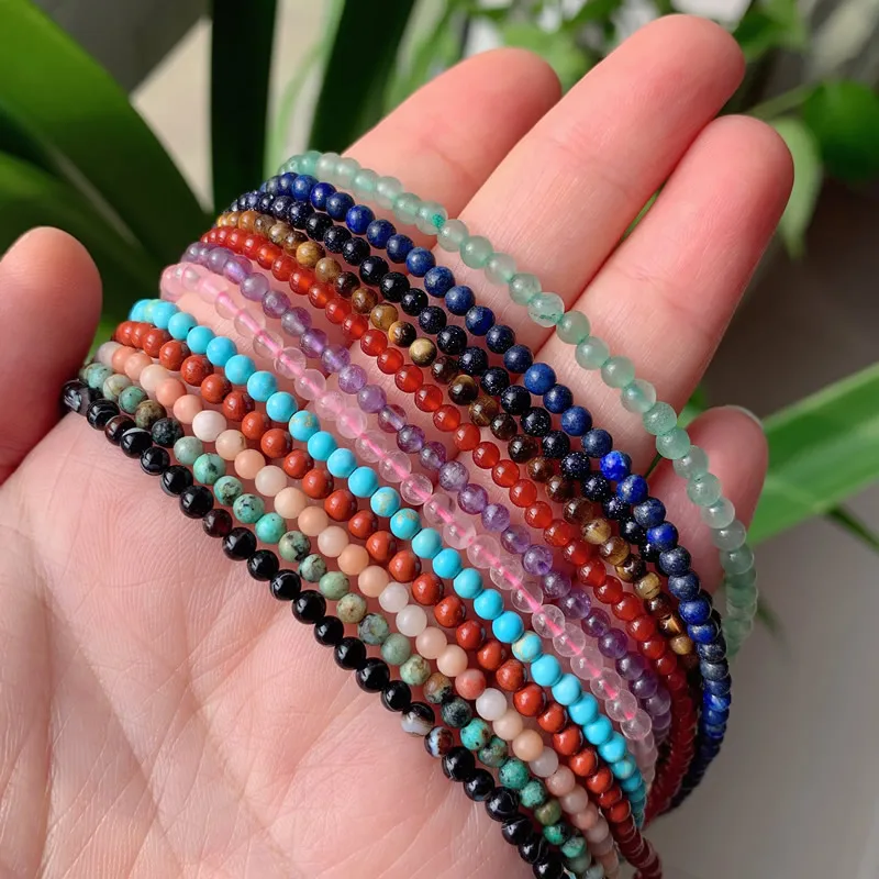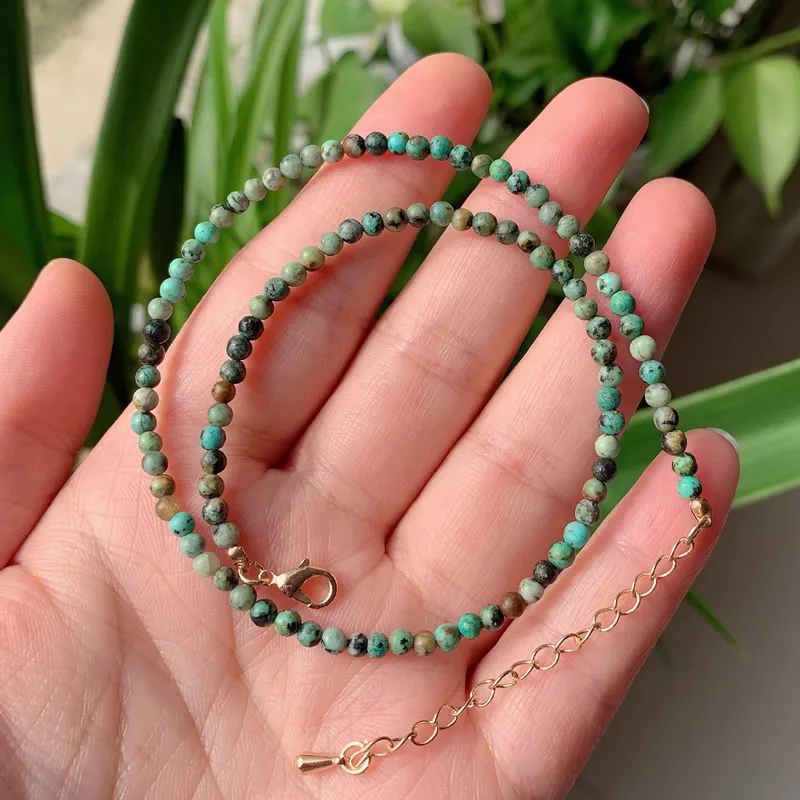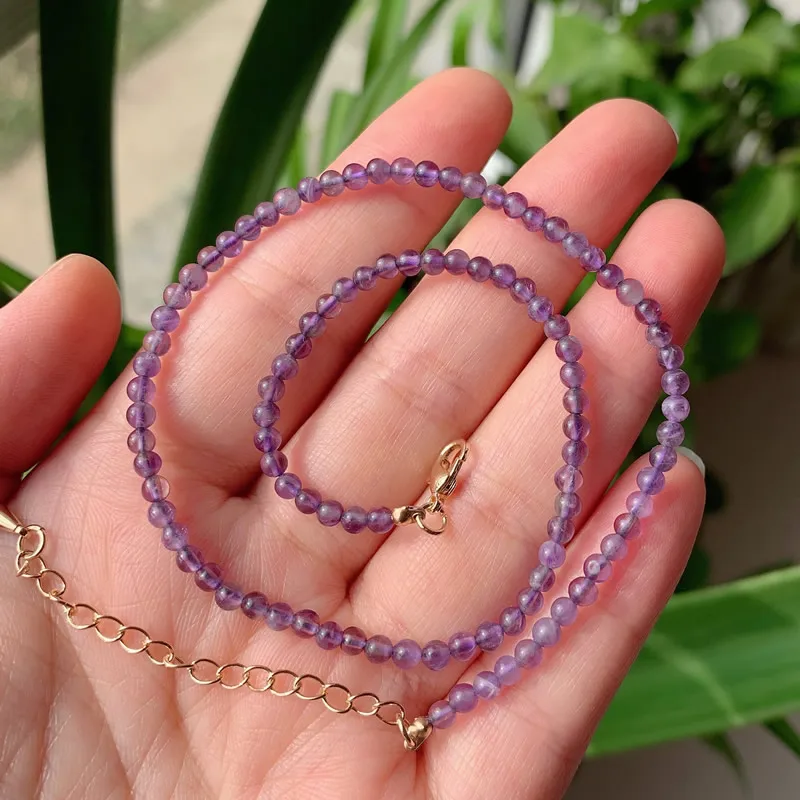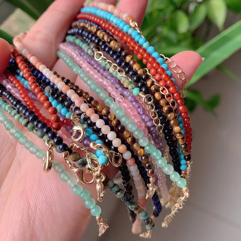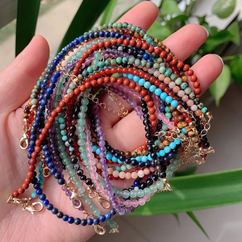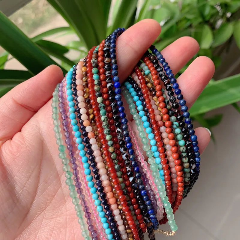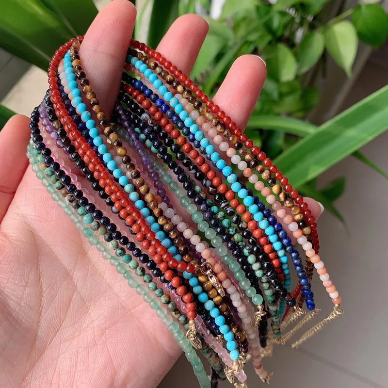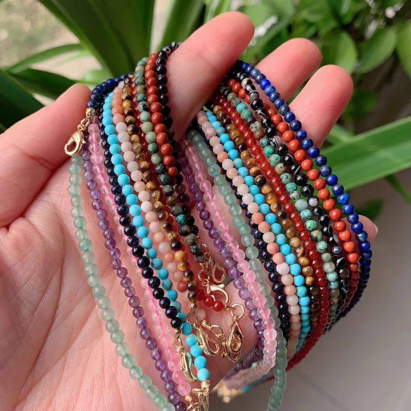 3mm Small Round Beads Choker Necklaces Women Short Collar Natural Stone Amethysts Pink Quartz Lapis Turquoises Crystal Necklace