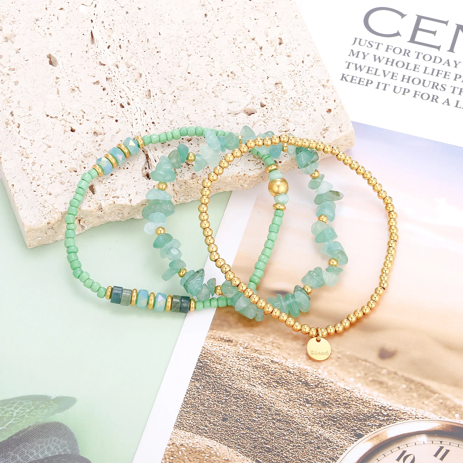 3PS Natural Gem Stone Beads Bracelet Irregular Crystal Stretch Chip beads Nuggets Bracelets Bangles Quartz Wristband For Women