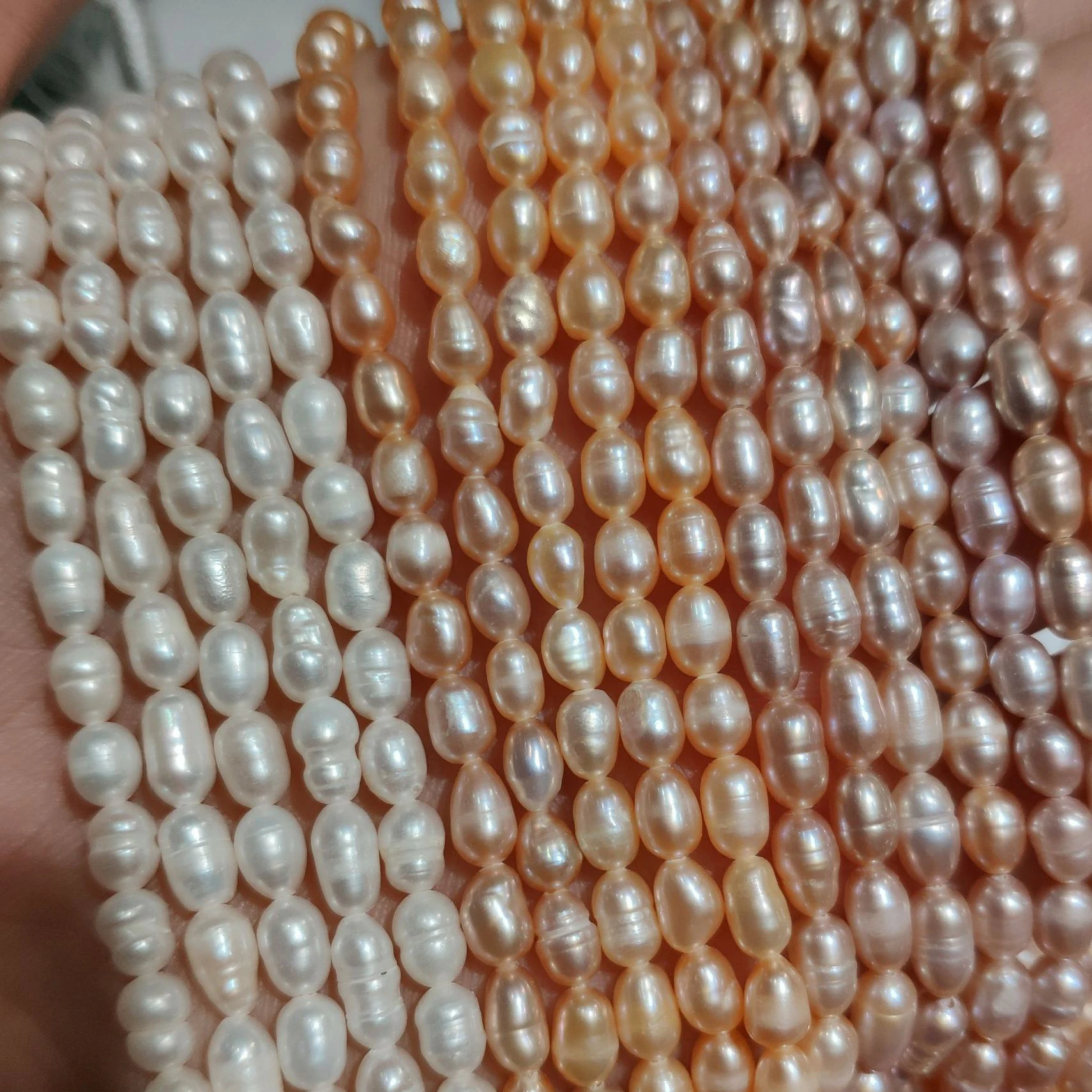 4-5mm Rice Natural Freshwater Pearl Classic Choker Necklace DIY Jewelry Single Strand For Women 35cm