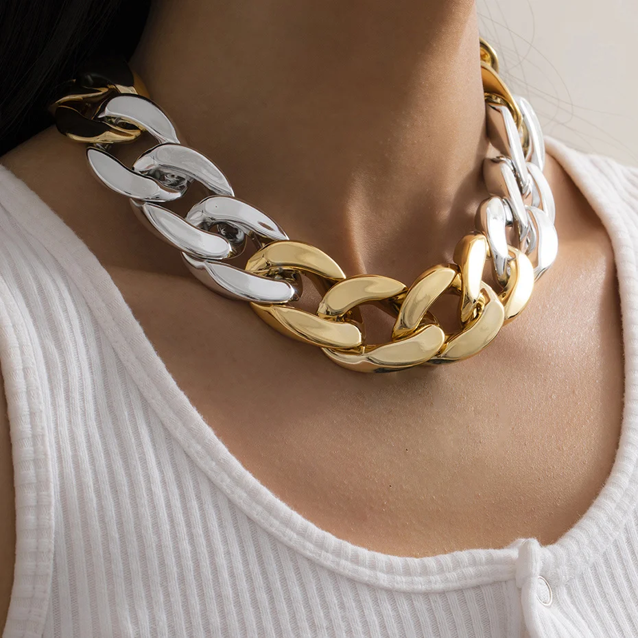 4 Colors Big Chunky Chain Necklace for Women Men 2021 Trendy CCB Plastic Gold Sliver Color Choker Necklace Statement Necklaces