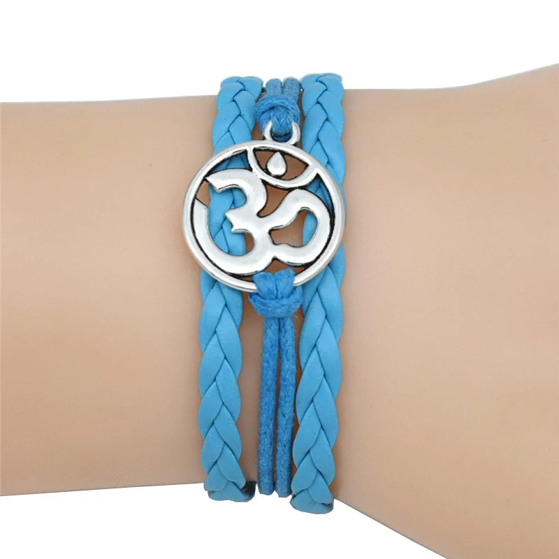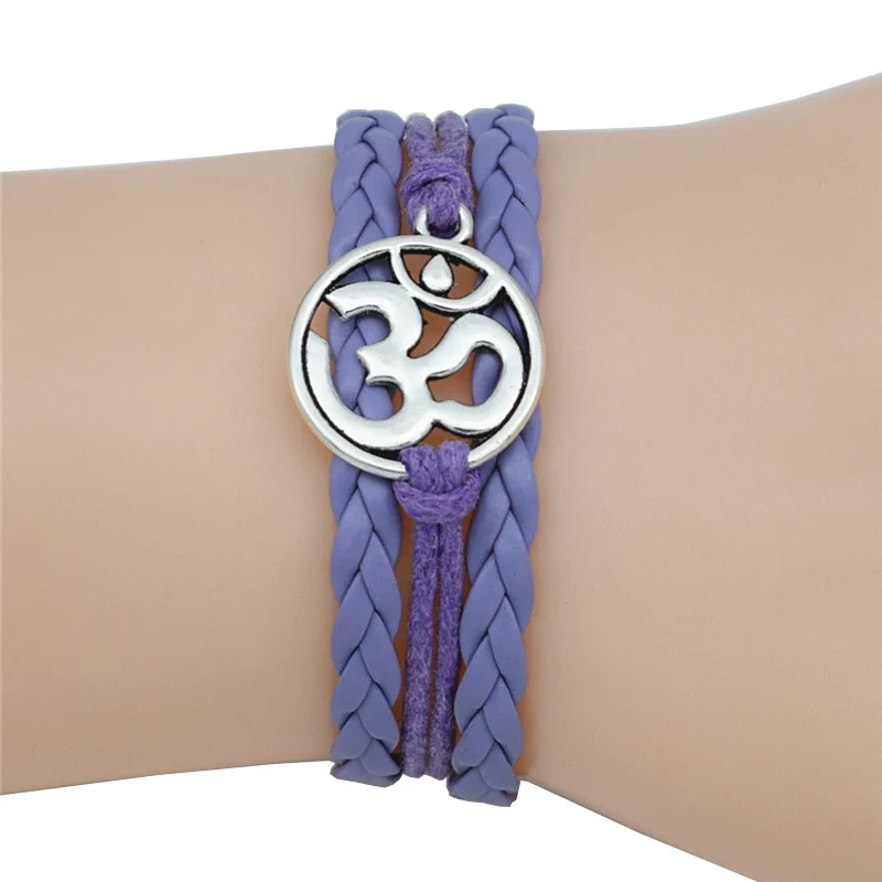 4 Colors Buddhist Hinduism Yoga Jewelry Leather Bracelet Antique Silver AUM OM Charm Meditate Yoga Meditation Yogi OHM Bracelets