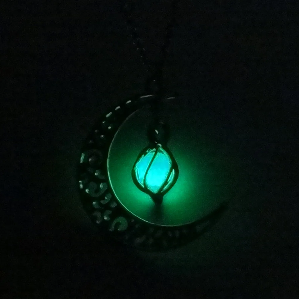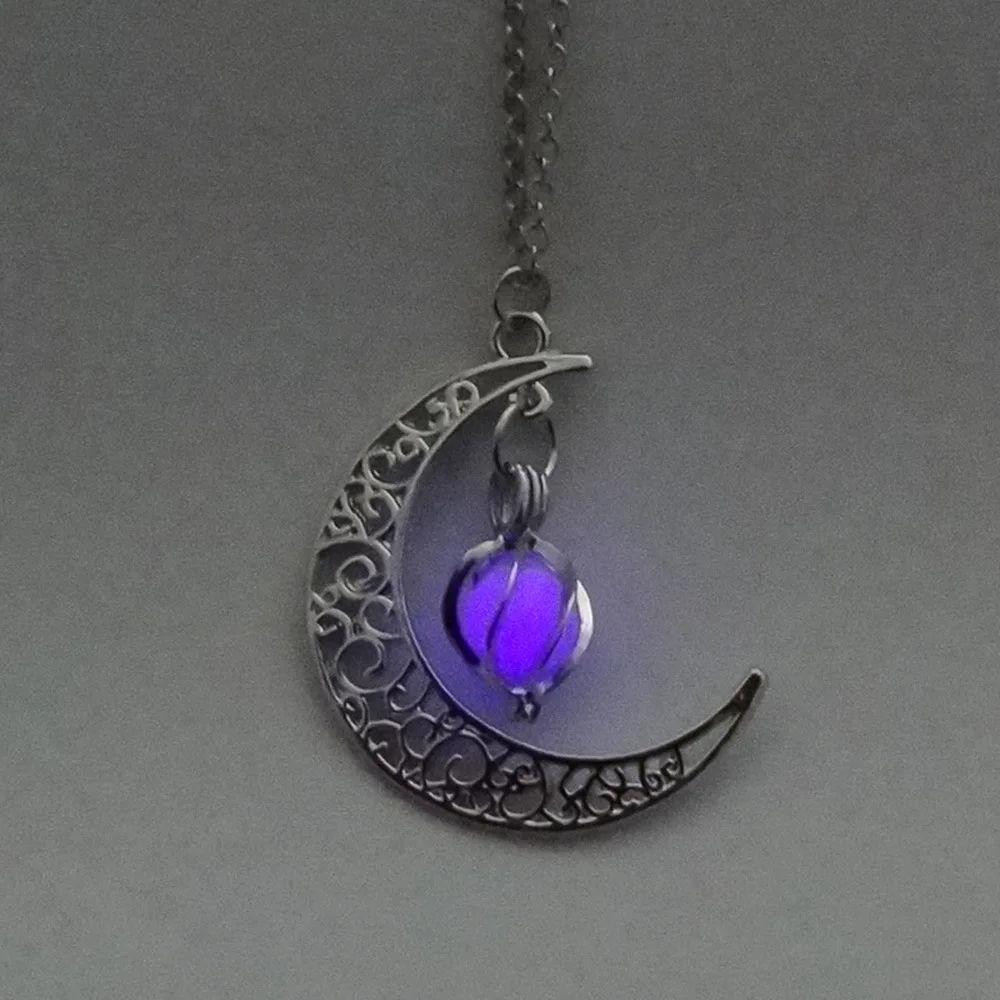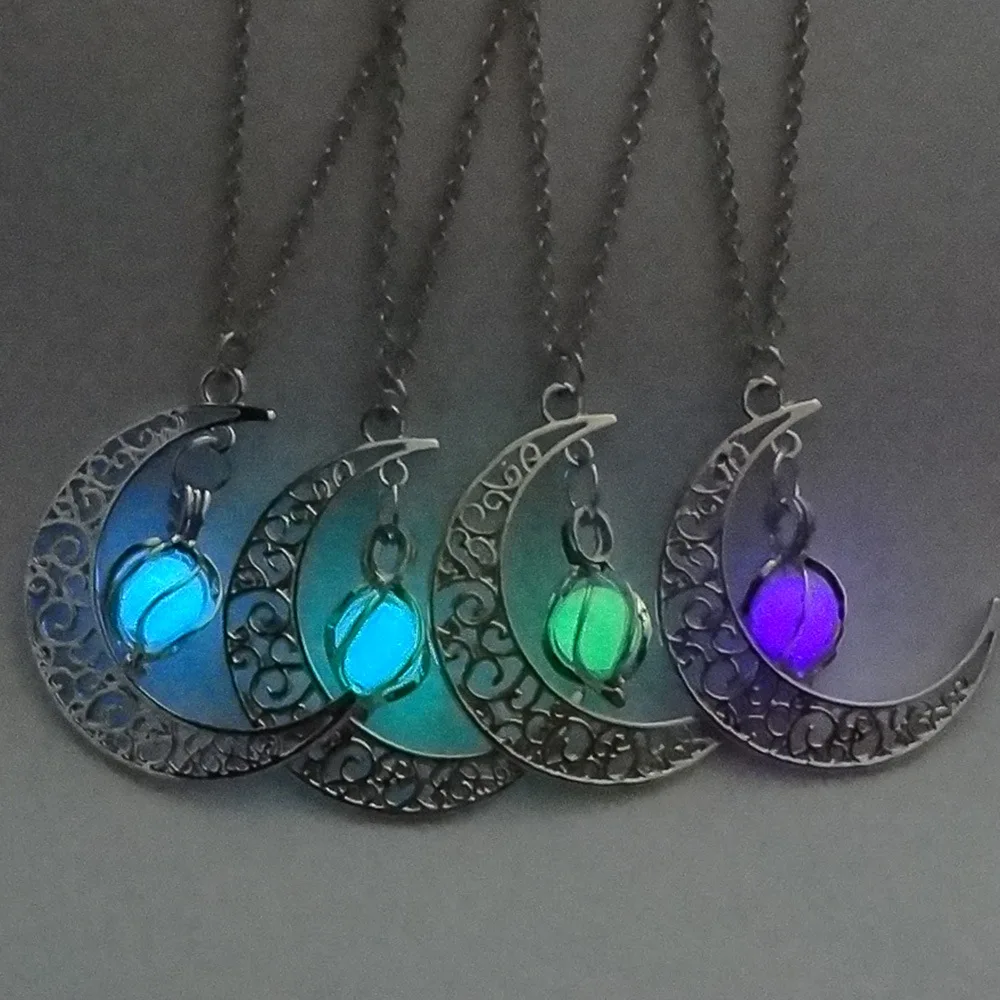 4 Colors Glow in the Dark Moon Necklace with Silver Color Crescent Moon Shaped Glowing Pendant Necklace for Christmas Gift