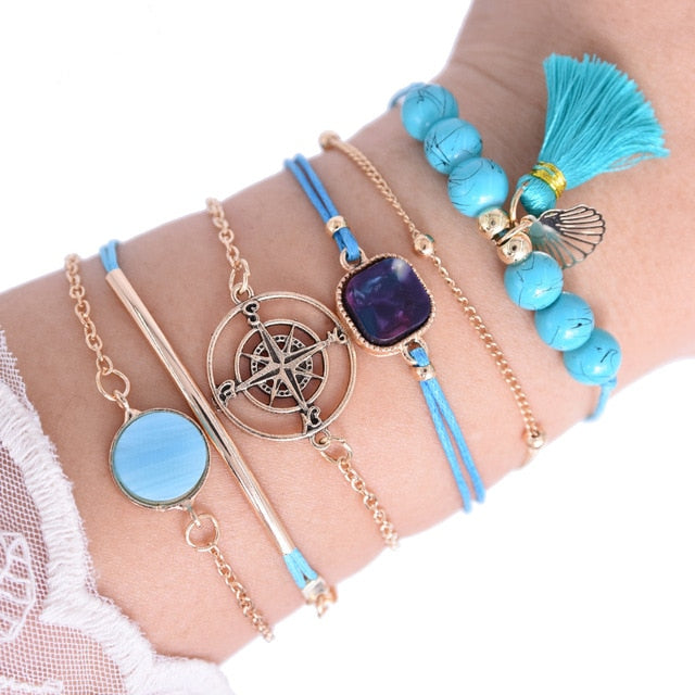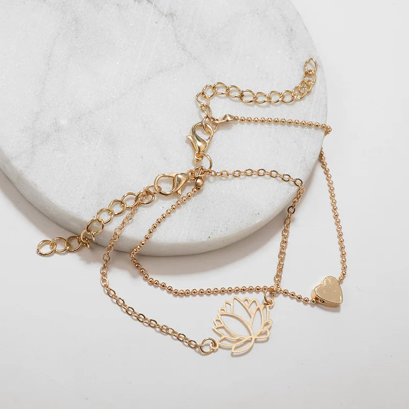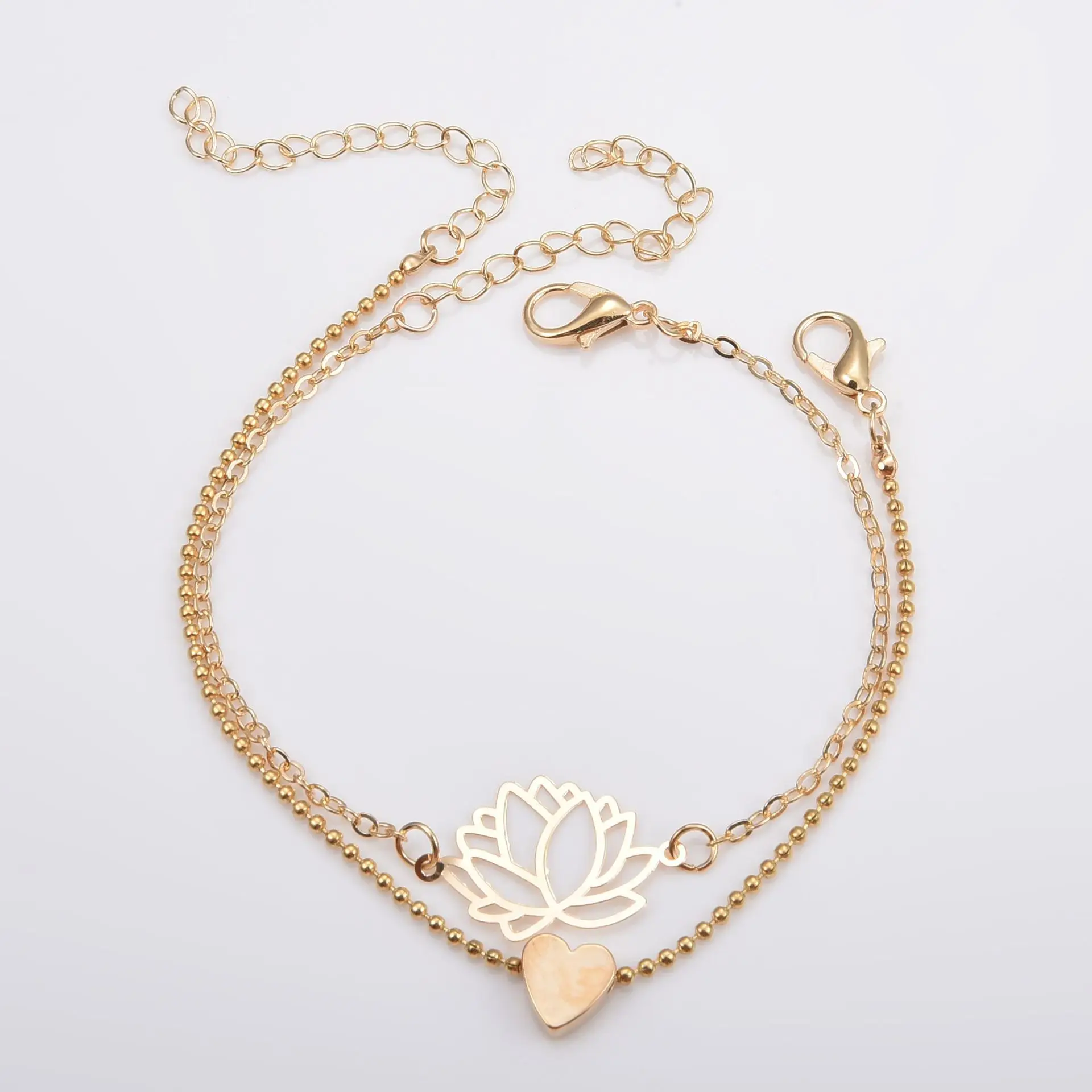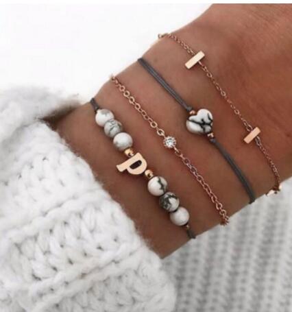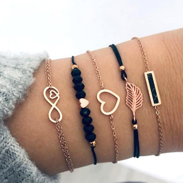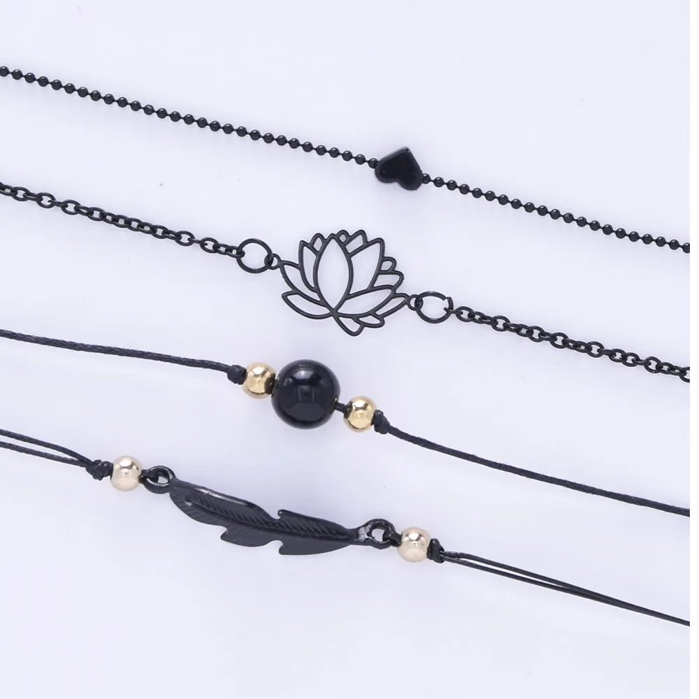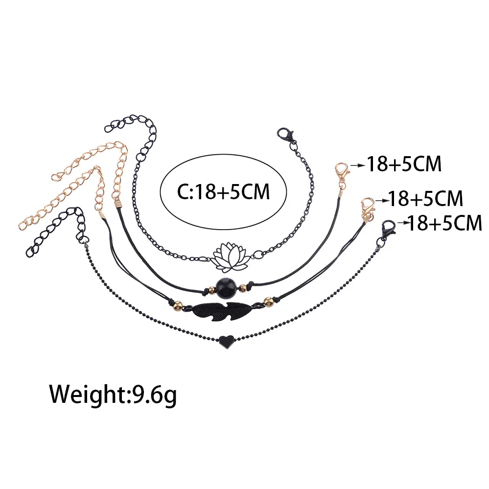 4-piece Lotus Pearl Black Hand Woven Bracelet Simple And Creative Hollow Out Love Women's Bracelet 2021 Bohemian Bracelet