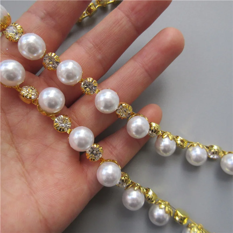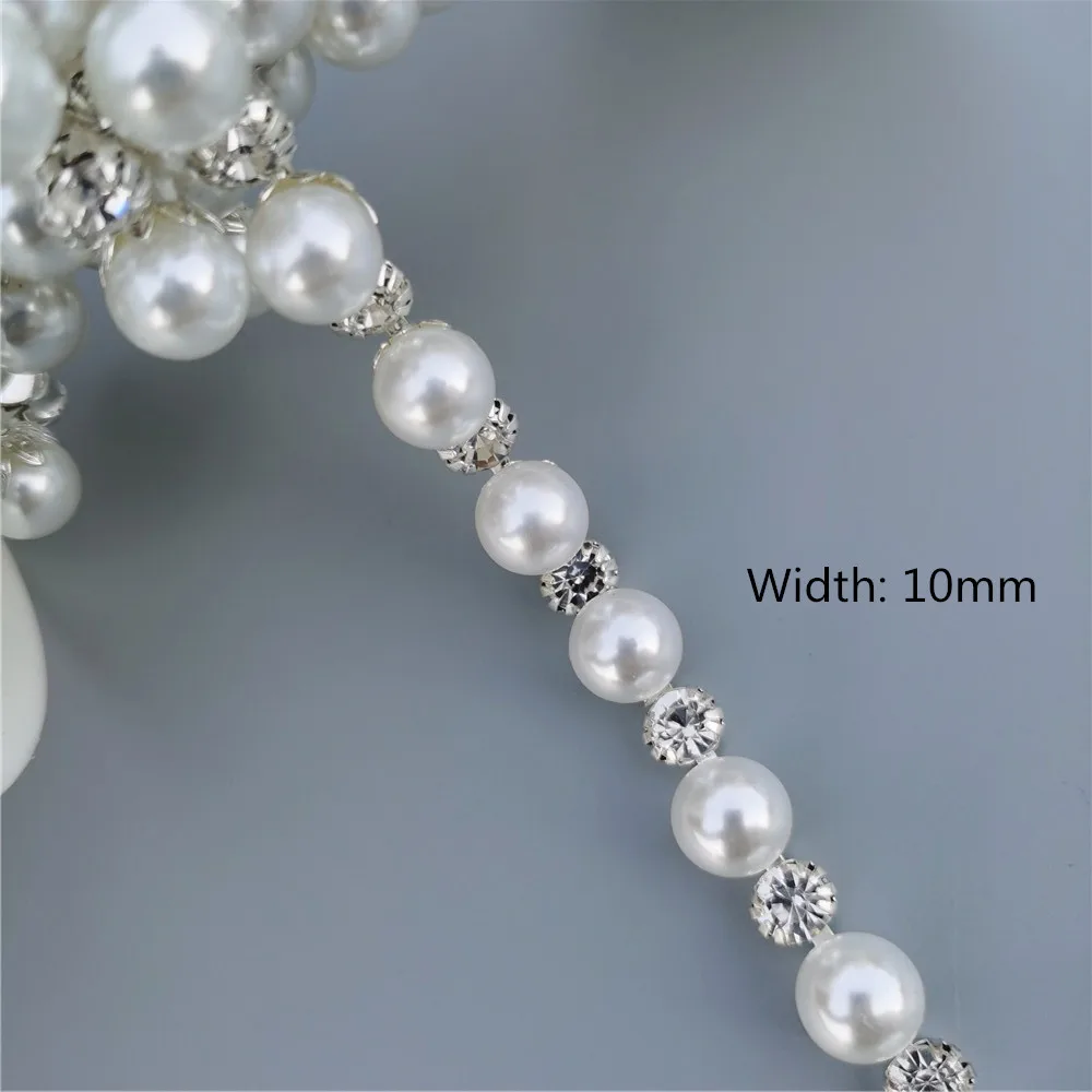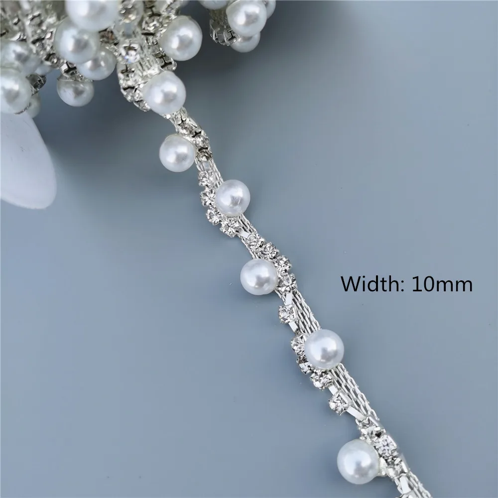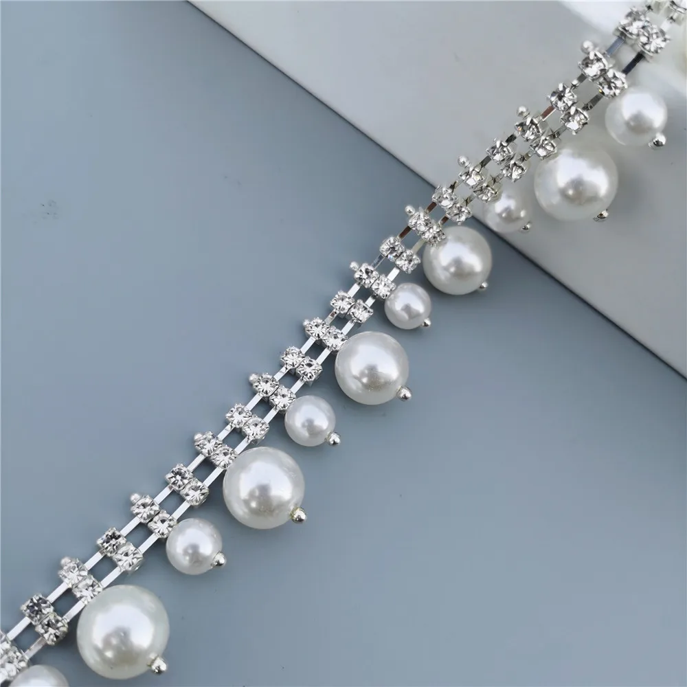 45cm/Lot Pearl Crystal Chain Manual Rhinestones Trim Ribbon Metal Chain Decoration Collar Wedding Dress Clothing Bag Accessories