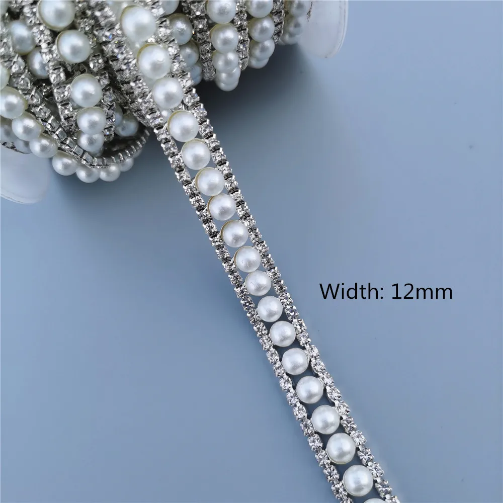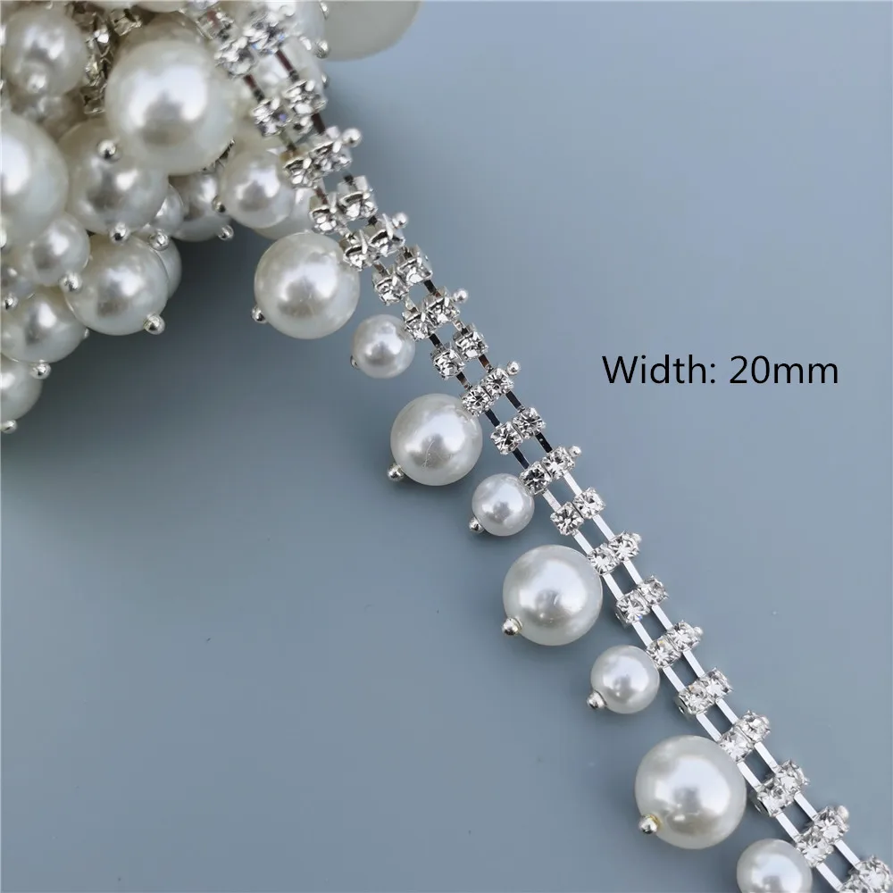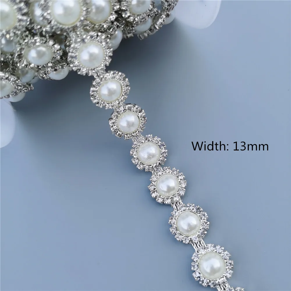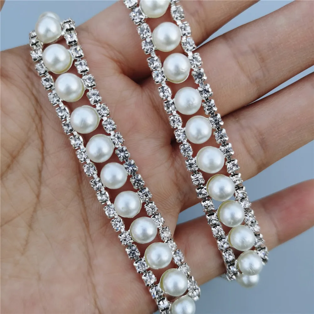 45cm/Lot Pearl Crystal Chain Manual Rhinestones Trim Ribbon Metal Chain Decoration Collar Wedding Dress Clothing Bag Accessories