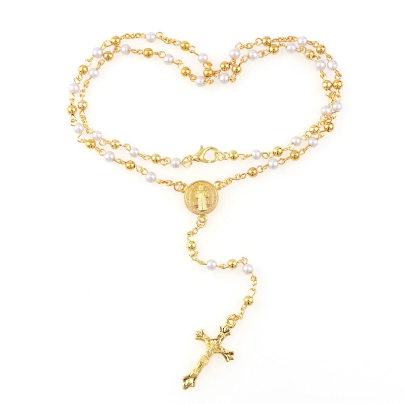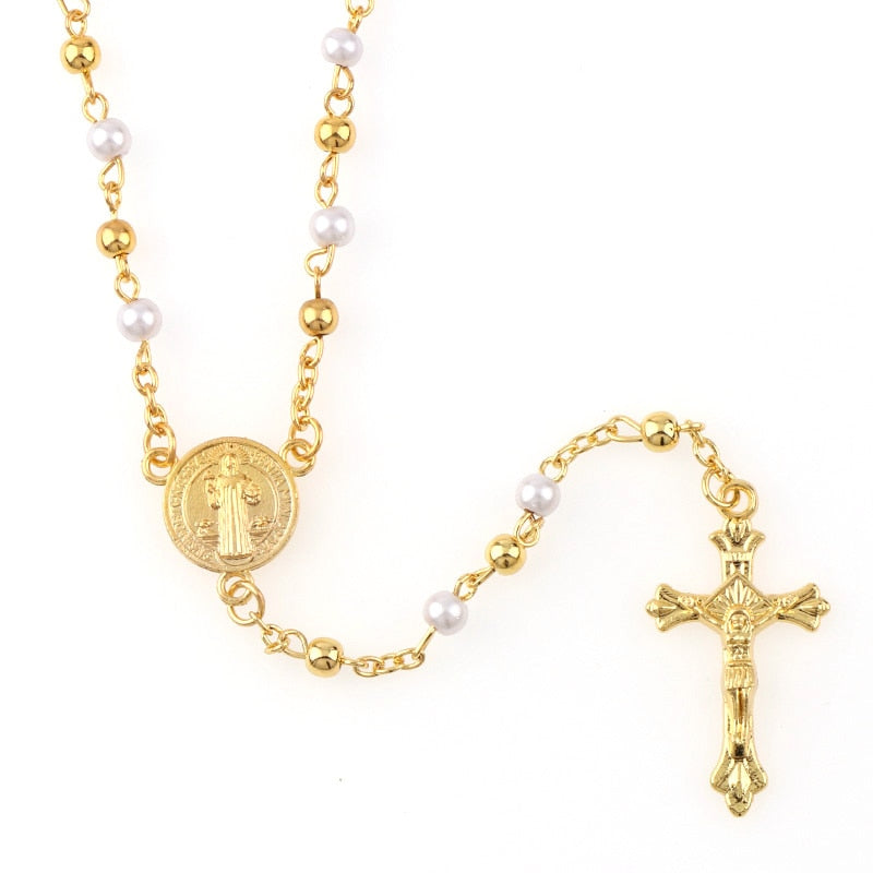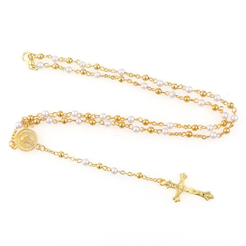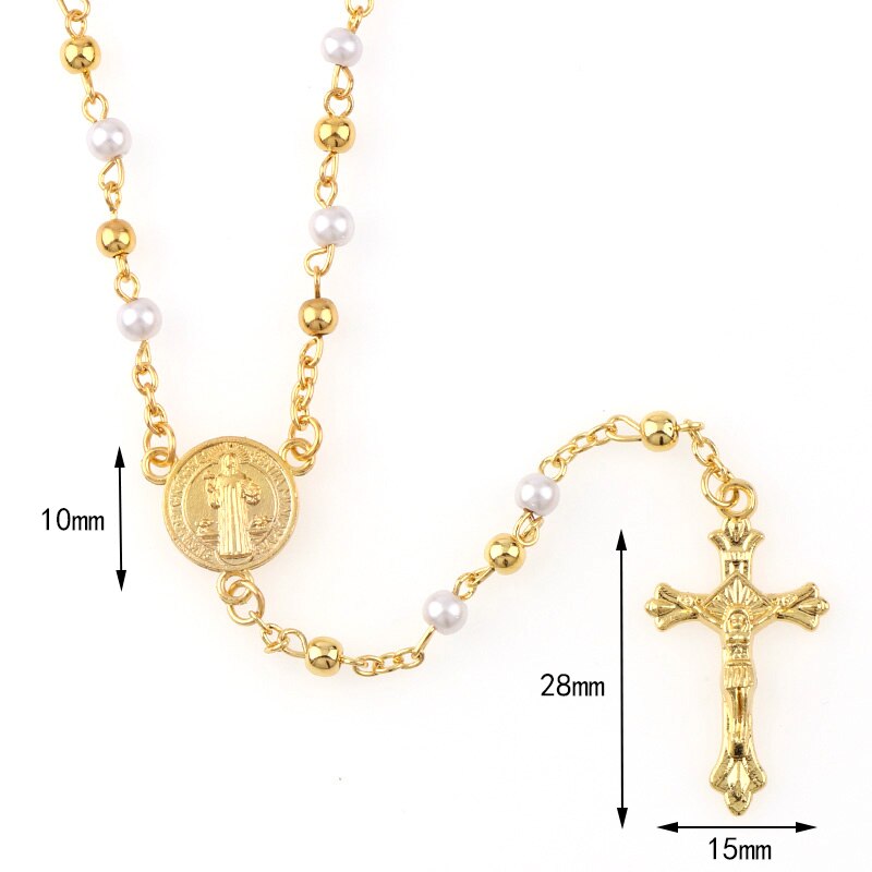 4mm Catholic Rosary Metal And Pearl Beads Necklace Jewelry Religious Bead Blessed Virgin Mary With Jesus Cross