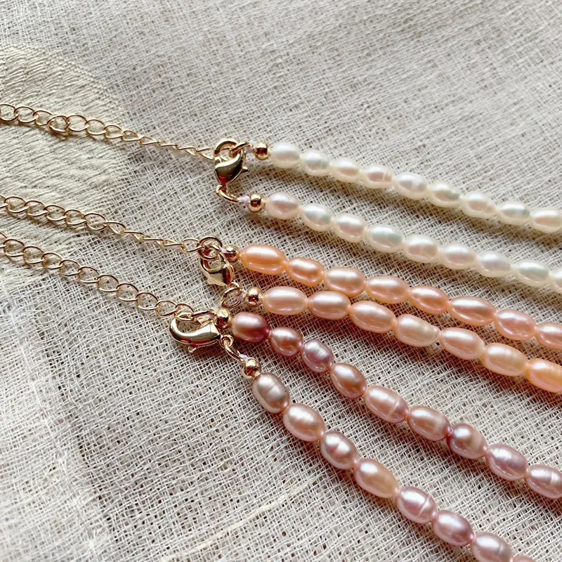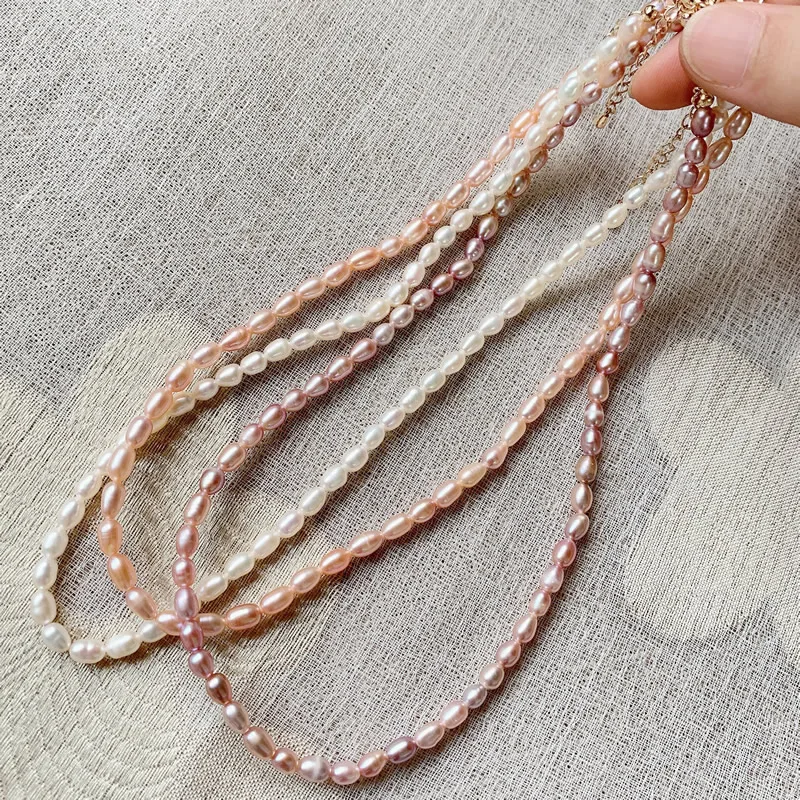 4mm Small Mini Rice Pearl Collar Vintage AA Elegant Natural Freshwater Pearl Choker Necklace Shiny White Pearl Jewelry for Women