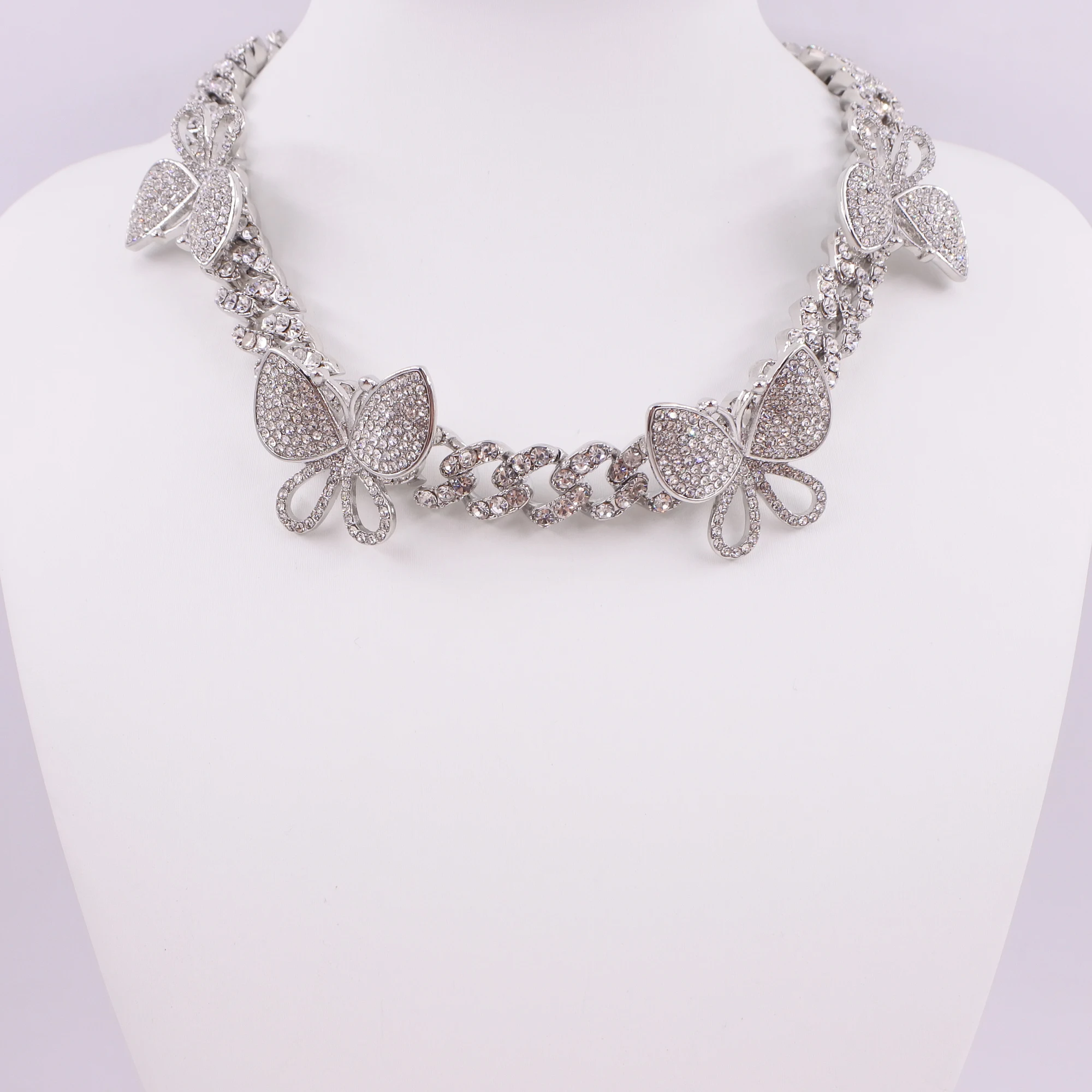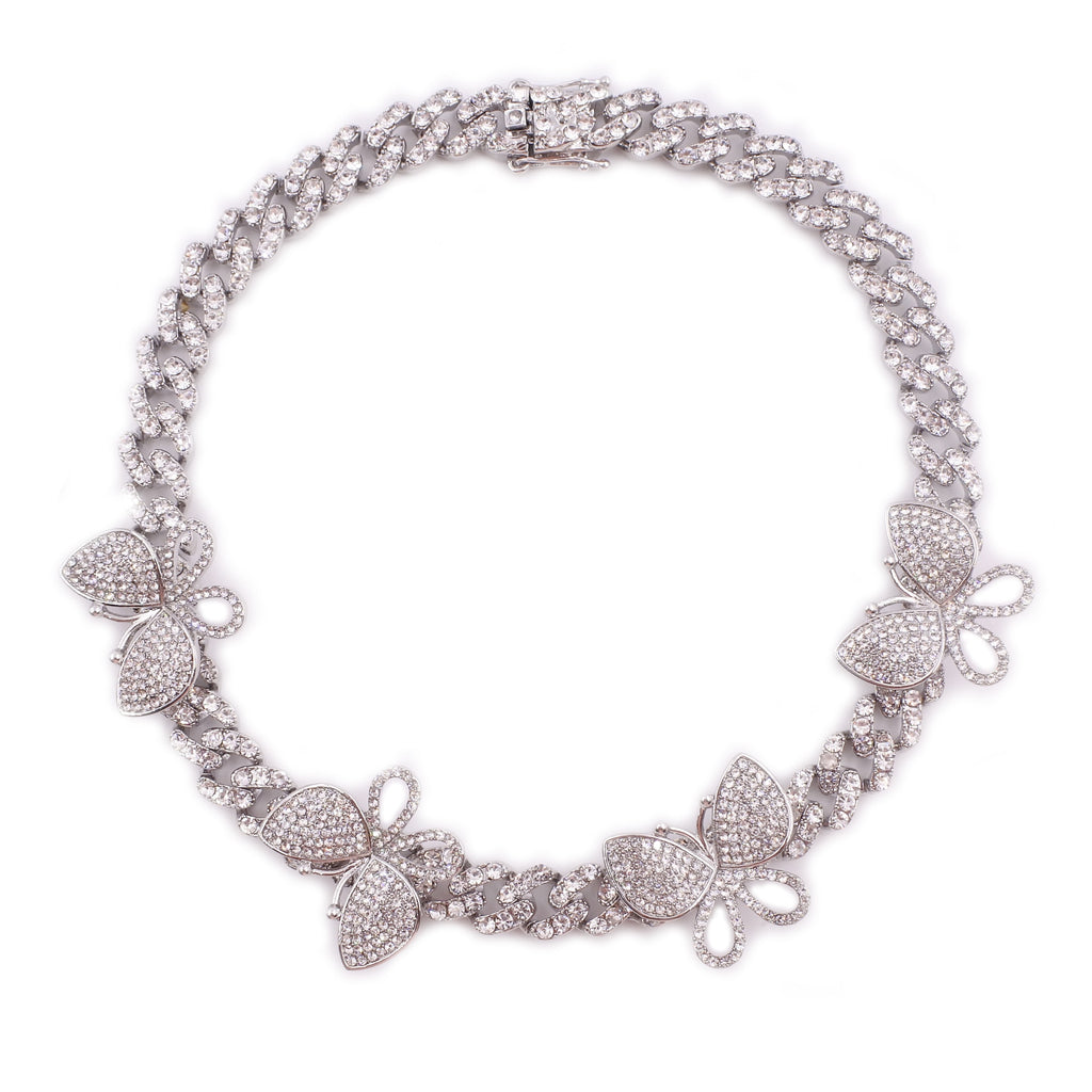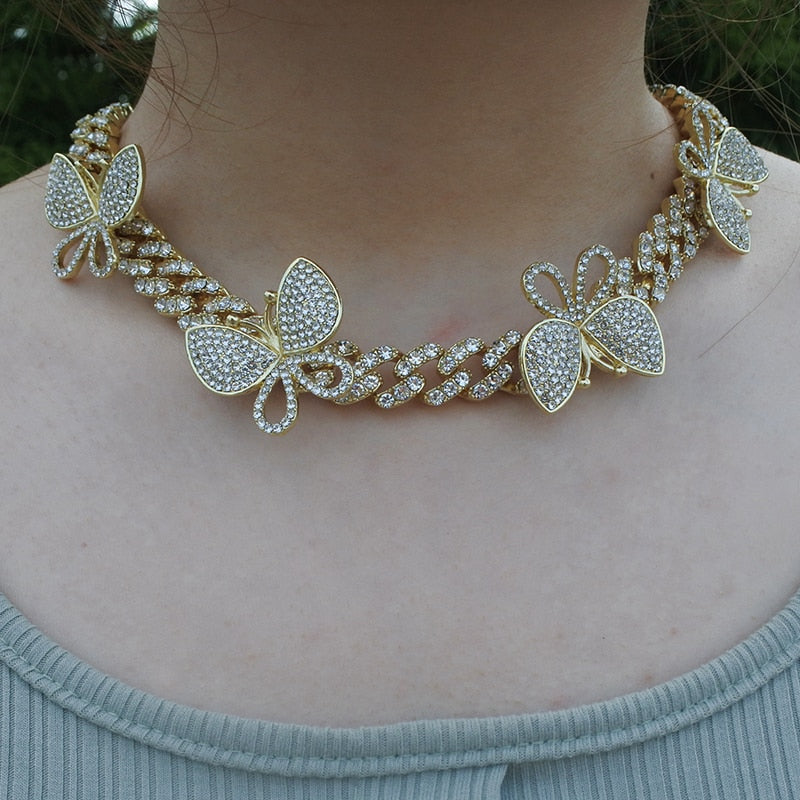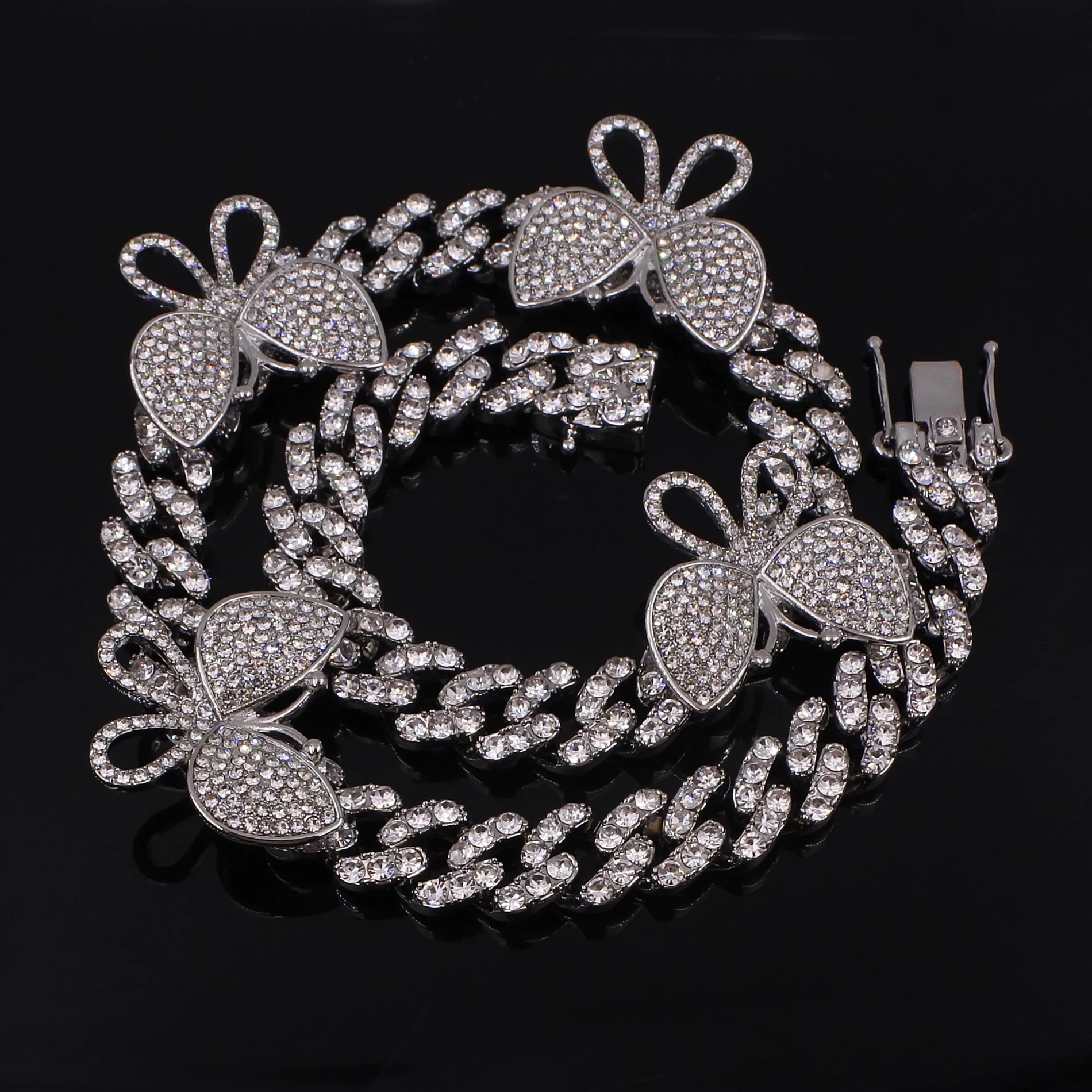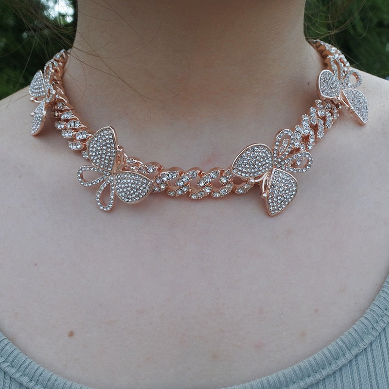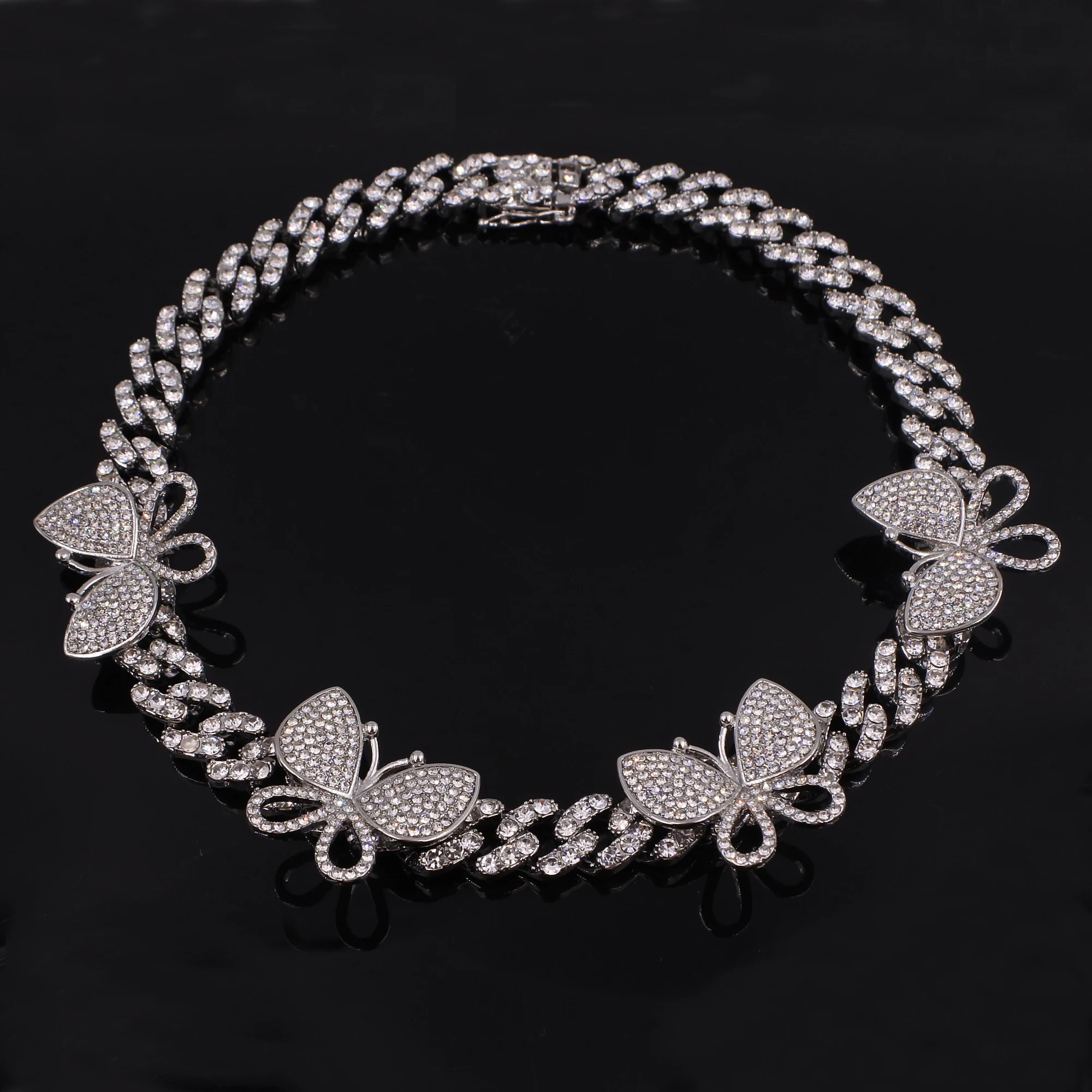 4pcs butterfly pendant charms necklace women hip hop miami cuban curb link chain iced out pink rose gold rapper punk jewelry cz