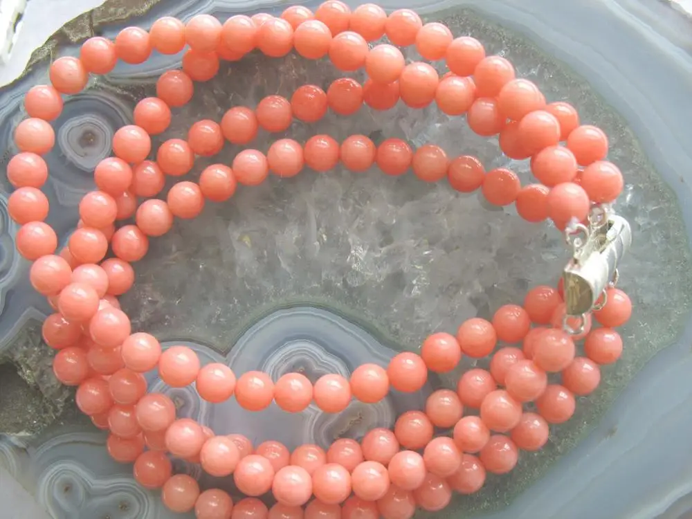 4rows pink coral round 4mm bracelet 7.5inch beads nature gemstone