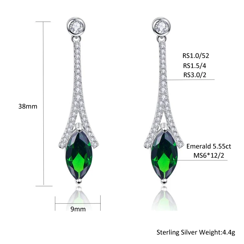 2020 Nano Emerald Dangle Vintage Earrings Drop Silver Water Drop Cut For Women 925 Solid Sterling Silver Brand Fashion Earrings