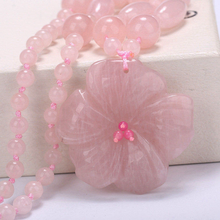 5*5cm Elegant Nature Stone Necklace Flower Pendant Women Love Stone Goldstone Tiger Eye Beads Choker Obsidian Agate Lapis Amber