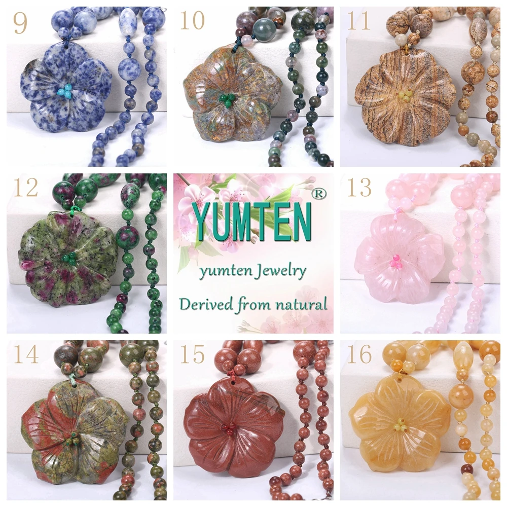 5*5cm Natural stone Flower Agate Amber Pendant Bohemian Tribal Jewelry Beaded Choker Vintage Crystal statement Necklace jewelry