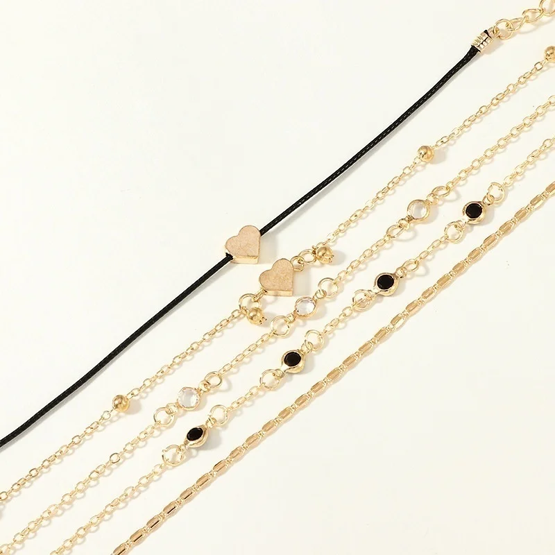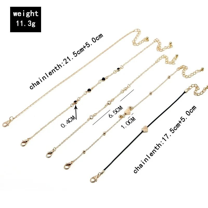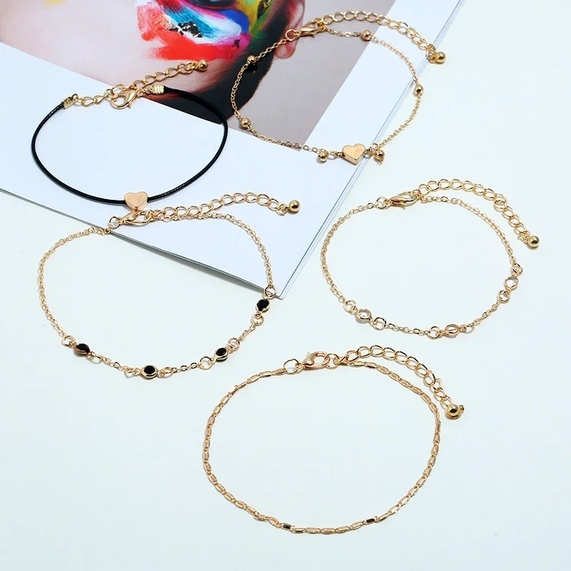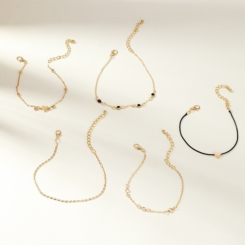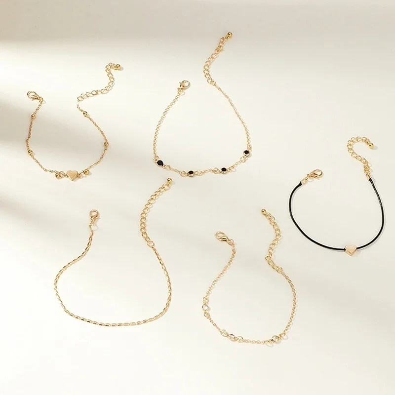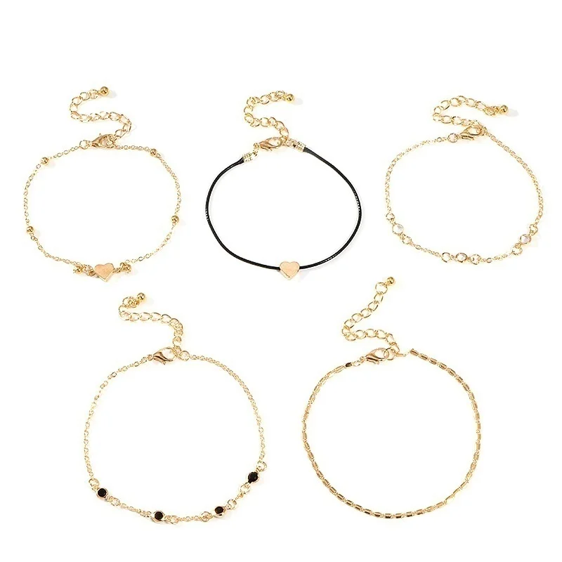 5 Pieces / Set of Trendy Chain Anklet Women's Anklet Multilayer Beach Anklet Love Anklet Accessories Party Jewelry