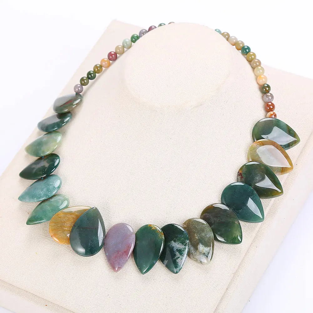 50cm Leaf Pendant Necklace Ethnic Women Choker Natural Stone Jewelry Gemstone Female Fashion Accessories Vintage Male Bohemian