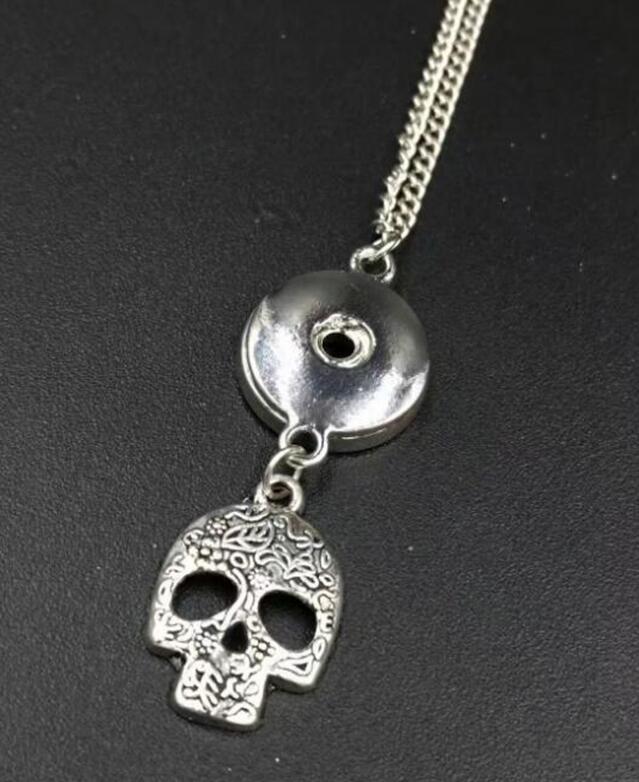 5PCS/Lot Sugar skull Necklaces &Pendants skull 18mm Snap Button Pendant Necklace Link Chain Necklace Statement Jewelry