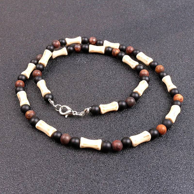 6mm Bead with white bone spacer stone beads Surfer Necklace for men tribal jewelry