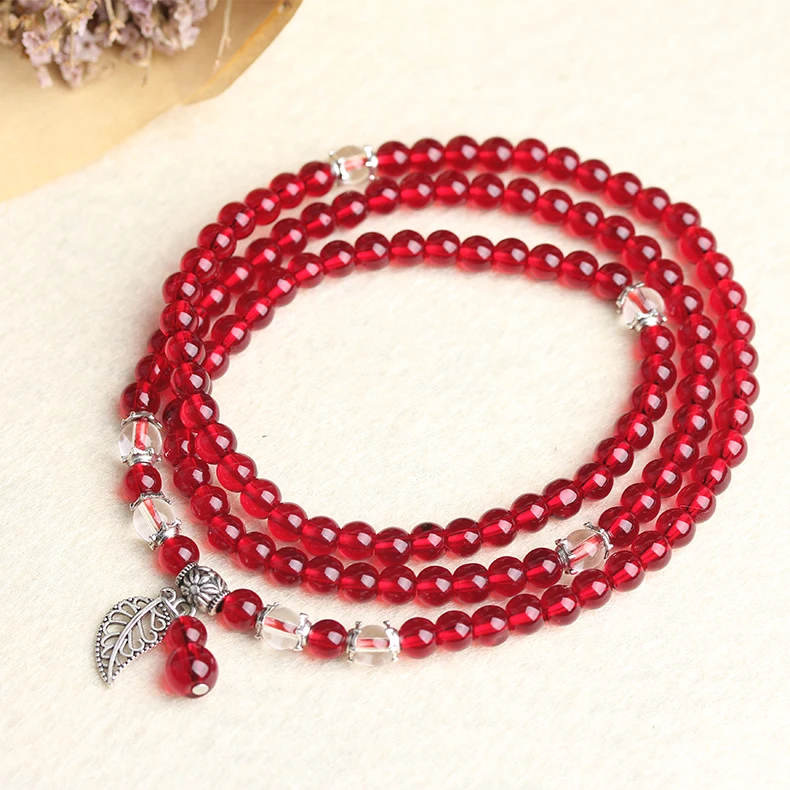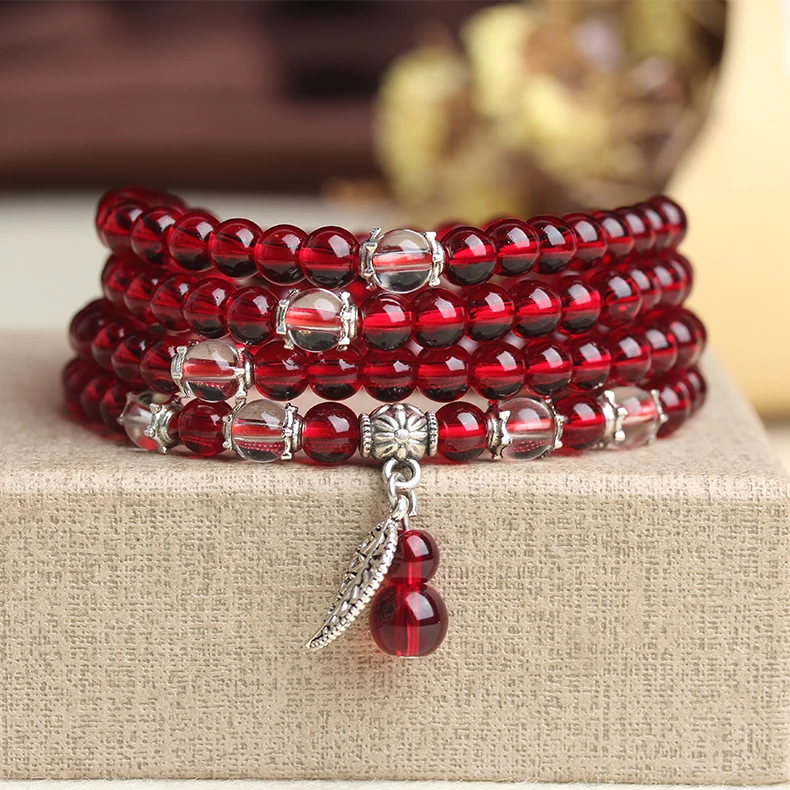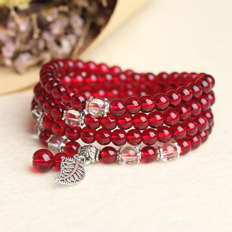 6mm Fashion Compose Wine Red Garnet Beads Bracelet Jewelry Fine Crystal Muti Ring Bracelet For Woman Gifts Drop Shipping