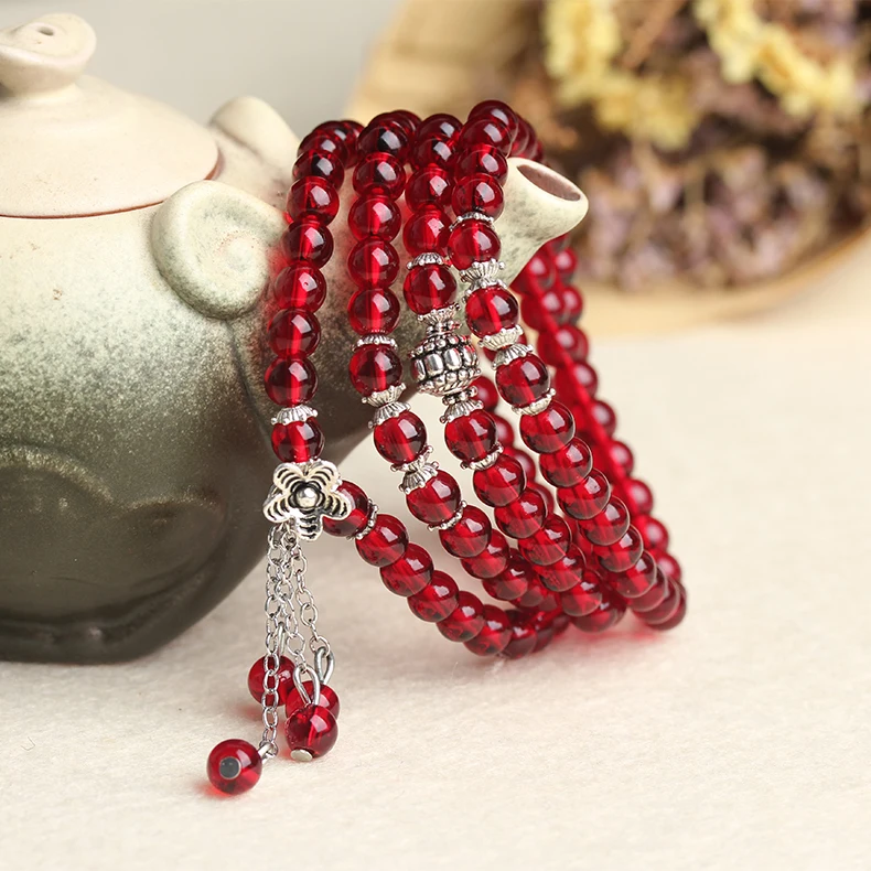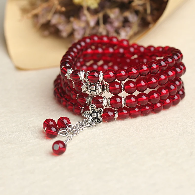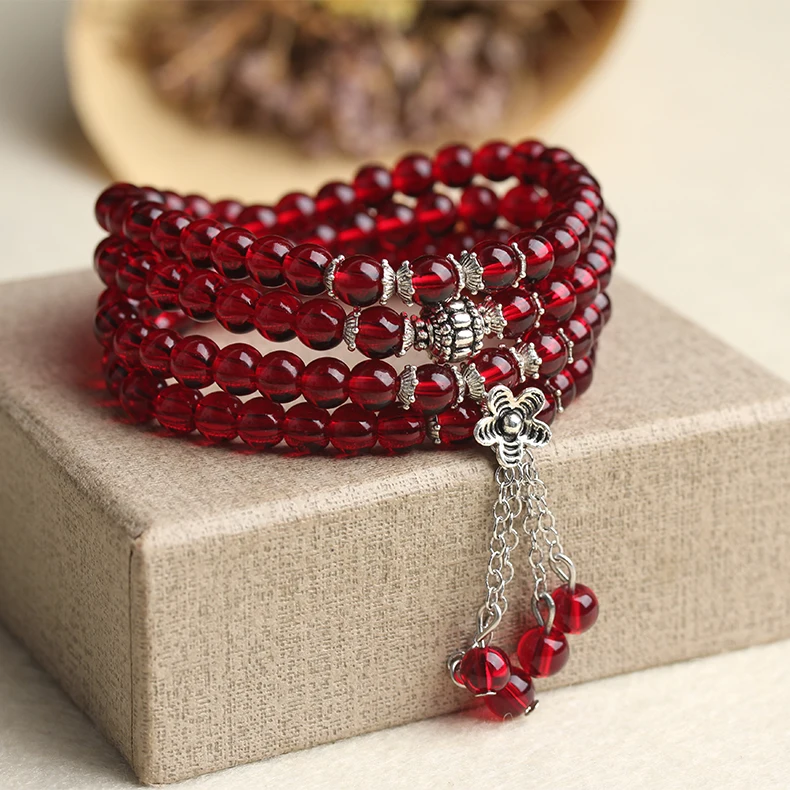 6mm Fashion Compose Wine Red Garnet Beads Bracelet Jewelry Fine DIY Crystal Muti Ring Bracelet For Woman Gifts Drop Shipping