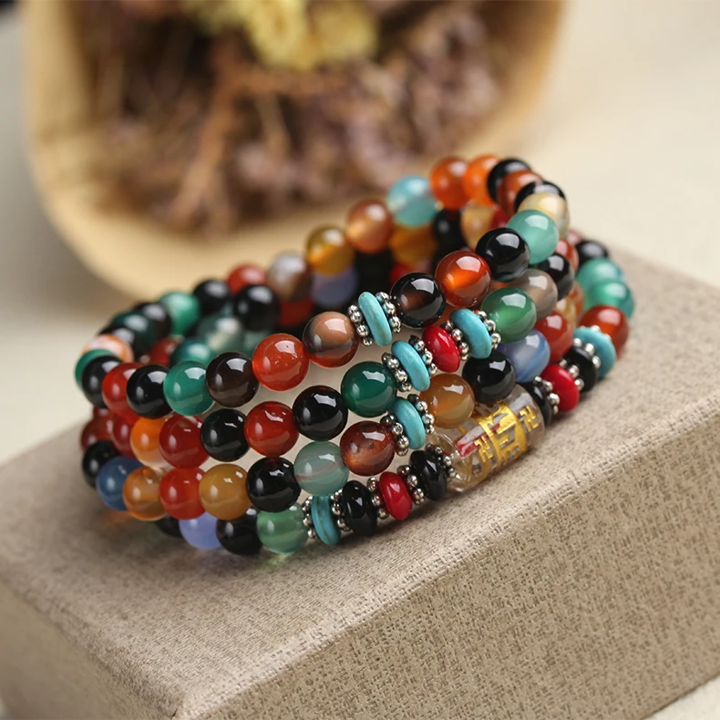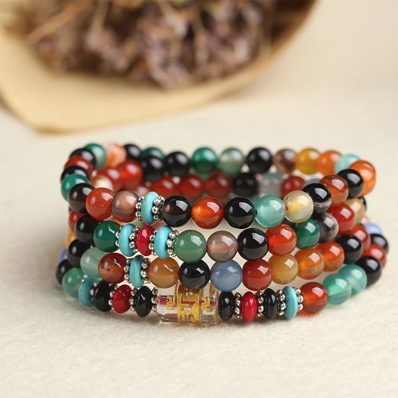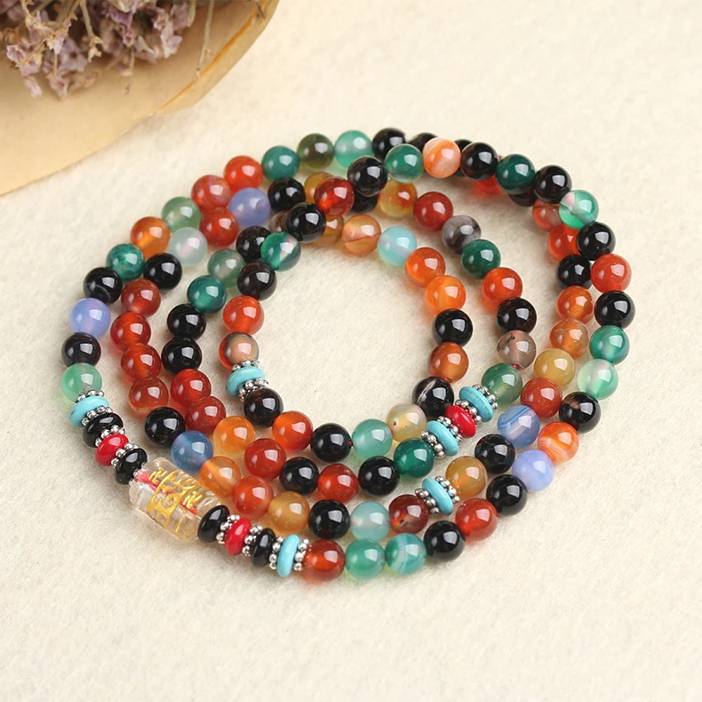 6mm Natural Colorful Agate Beads bracelet Fine Agate Beaded 108pcs Beaded Jewelry Bracelets For Woman As Gifts,Can Drop Shipping