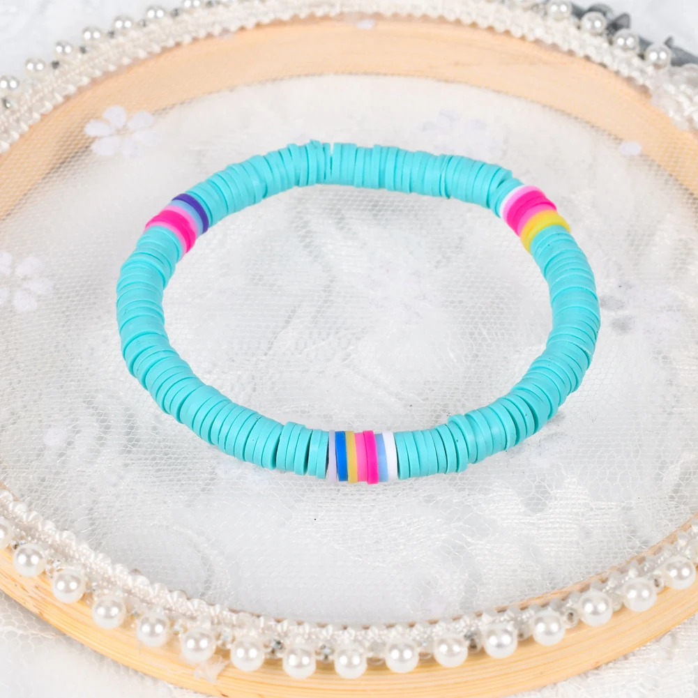 6mm Recyclable Polymer Clay Disc Beads Stretch Bracelets For Women Mixed Color Surfer Adjustable Elastic Soft Wristband Bracelet