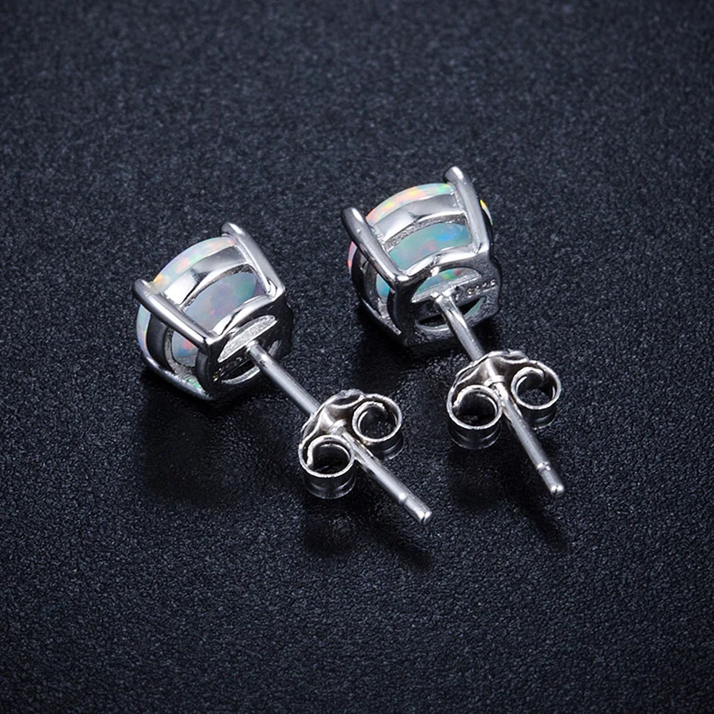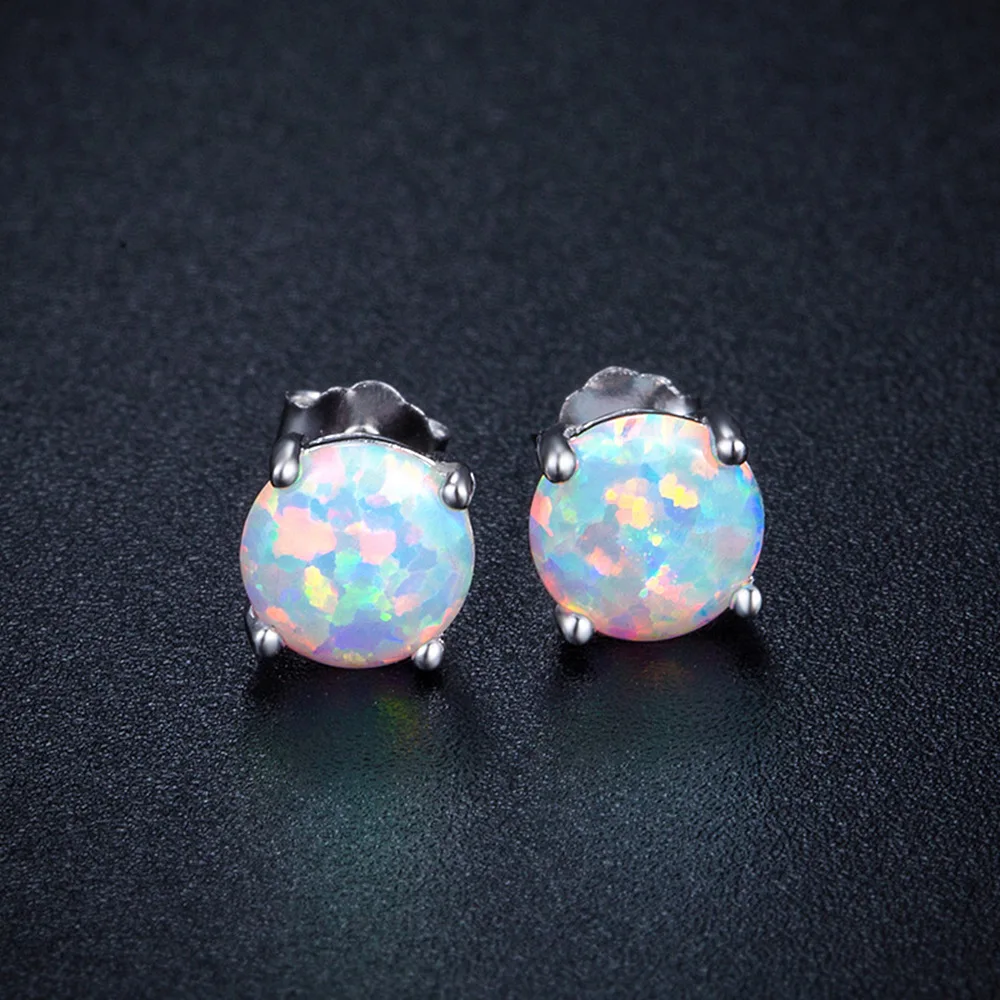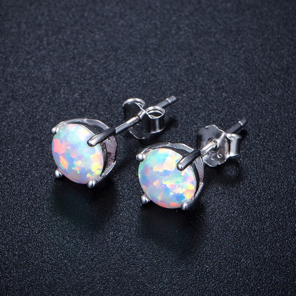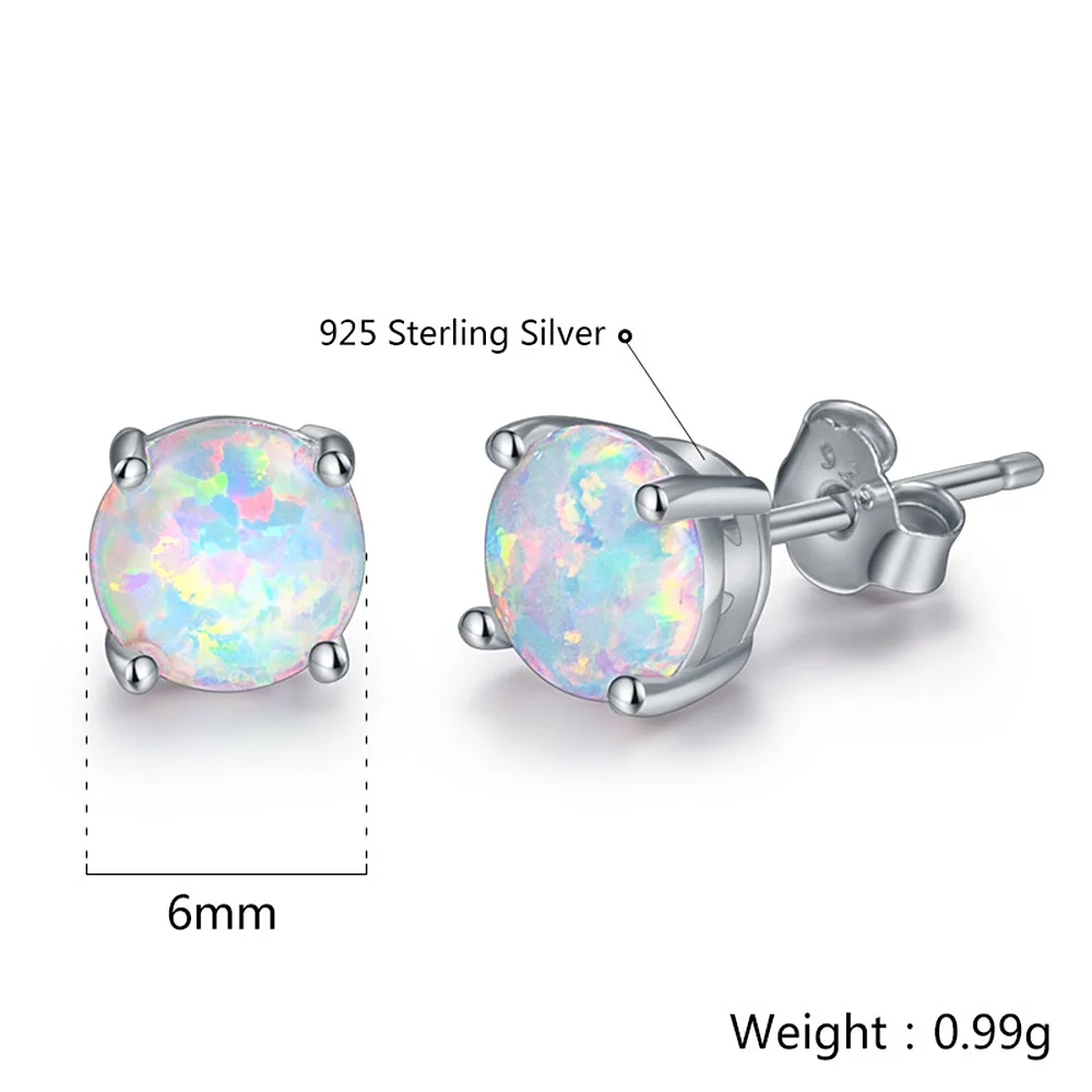 6MM Round White Fire Opal Stud Earrings For Women 100% Real 925 Sterling Silver Jewelry Cute Earrings Ear Jewellry Wedding Gift