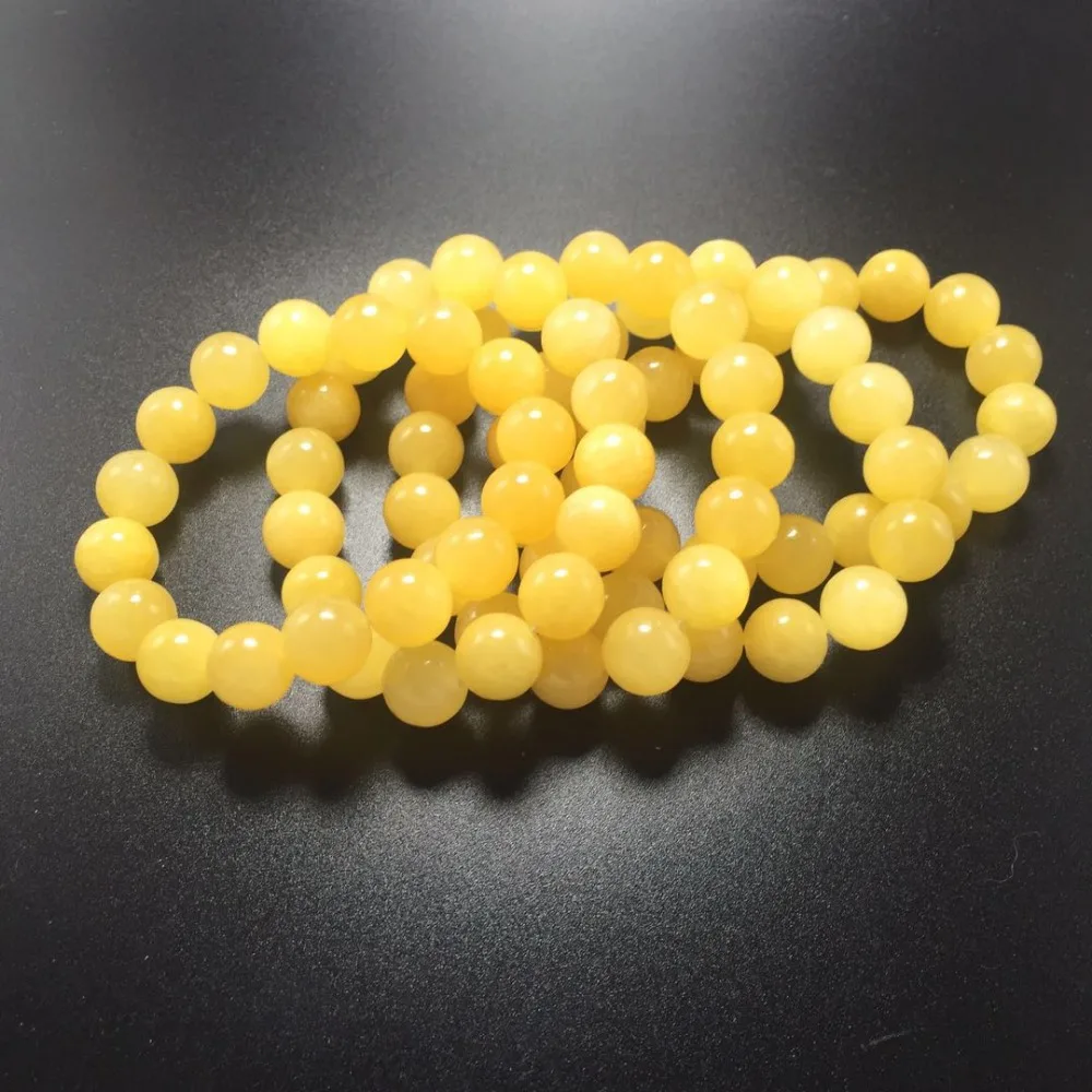 6pcs Wholesale Retail 10-12MM Natural Yellow Jade Bracelets Bead Refill Gem Lucky Stretch Elastic Bracelet Fashion Jewelry Women