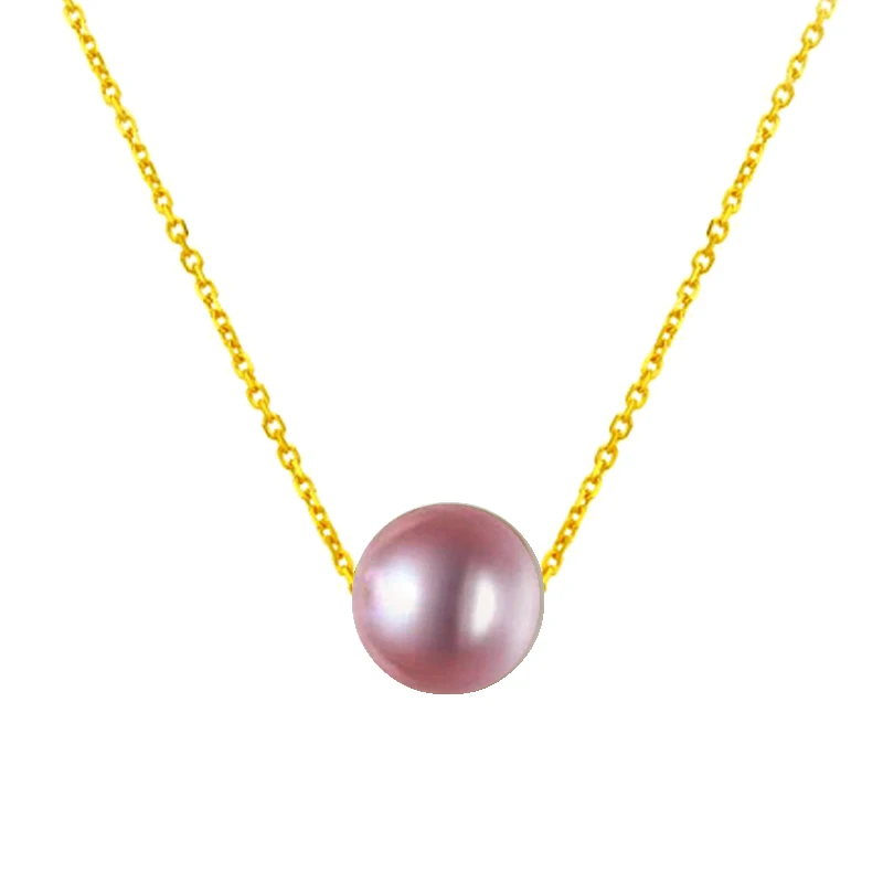 7.5-8mm 8-9mm 9-10mm 10-10.5mm Purple Round pearl thread AU750 18k chains Necklace for young ladies womens
