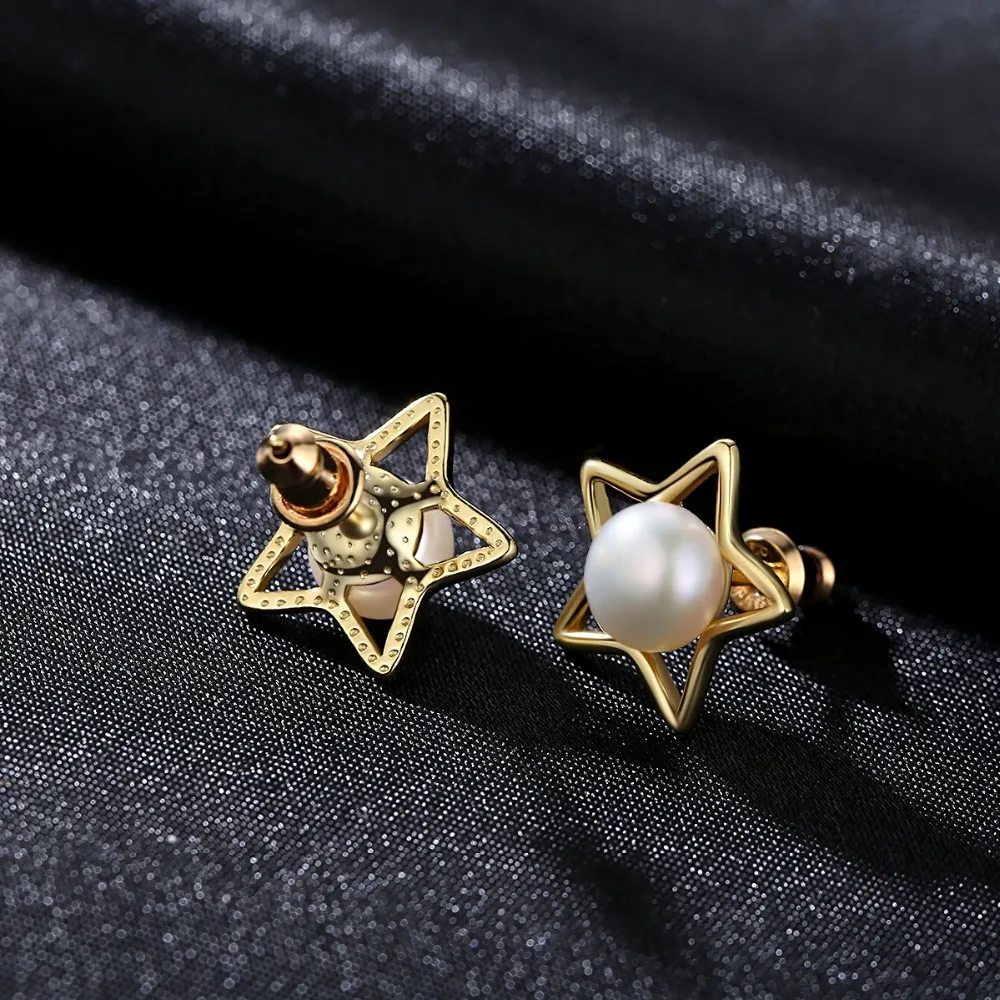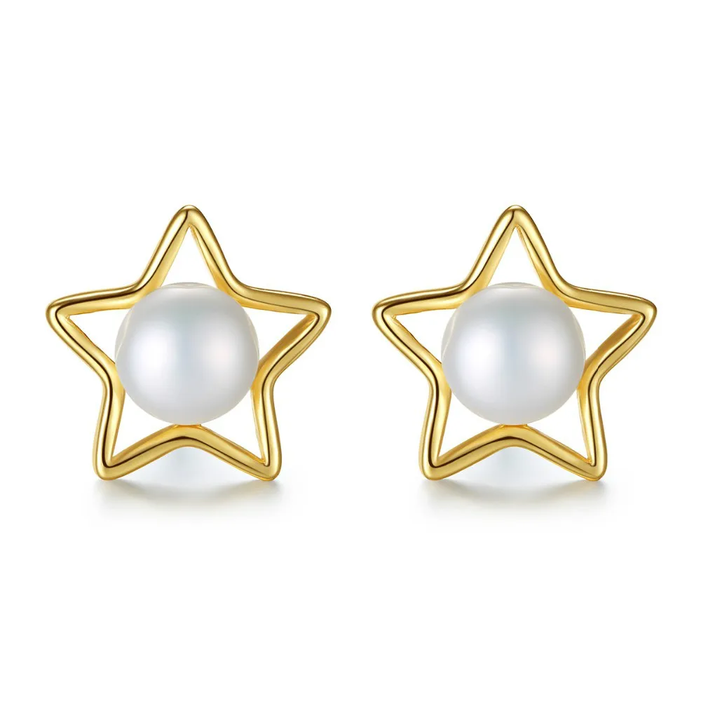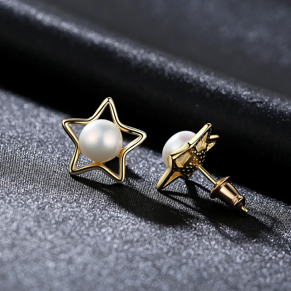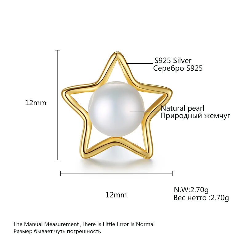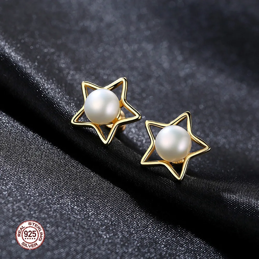 7-7.5mm Natural Pearl Silver Women Star Earrings 925 Silver Jewelry Daily Wear Factory Wholesale Gift Box Free