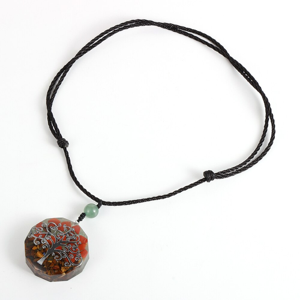 7 Chakra Quartz Natural Stone Tree of Life Orgone Pendant Necklace Men Women Healing Round Crystal Resin Necklaces Reiki Jewelry