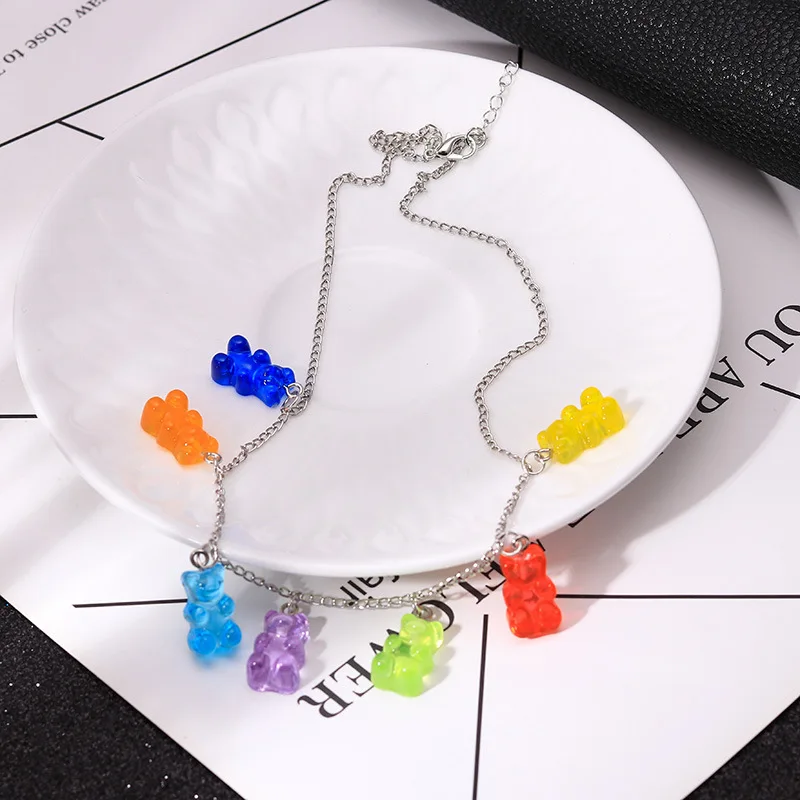 7 colores Arco Iris jalea Linda Oso de goma collares para mujeres chicas chica Punk Hip Hop collares de resina accesorios de las mujeres 1PC