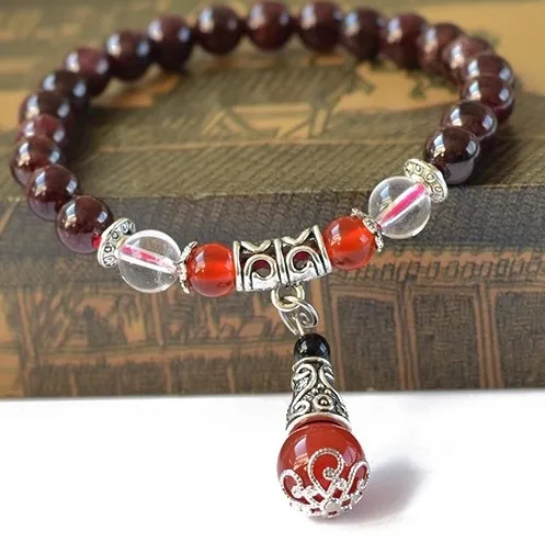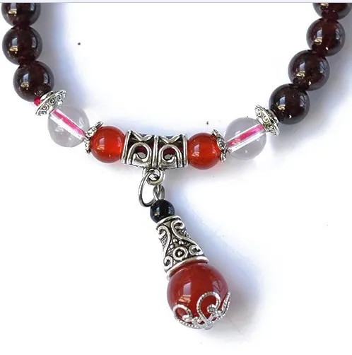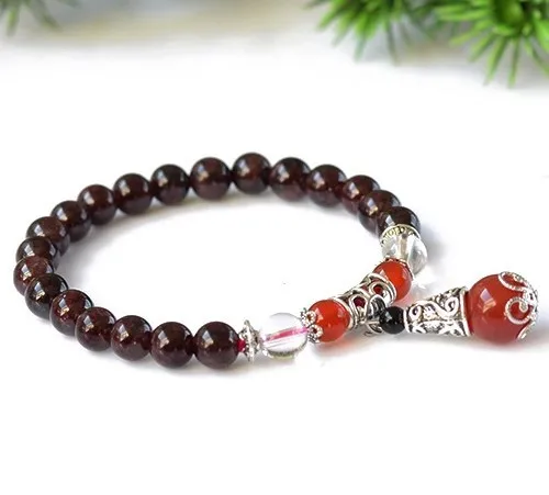 7mm Natural Garnet Gemstone Beads Bracelets Fine Garnet Beaded Elastic Line Bracelet Jewelry For Women Can Drop Shipping