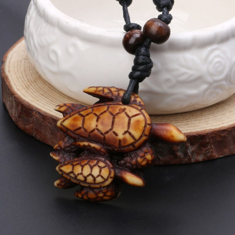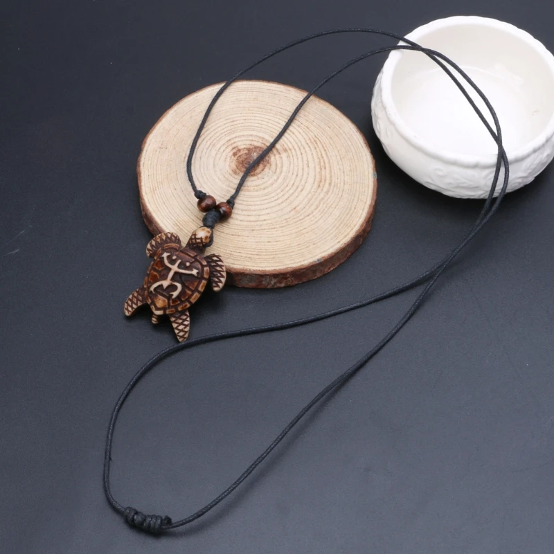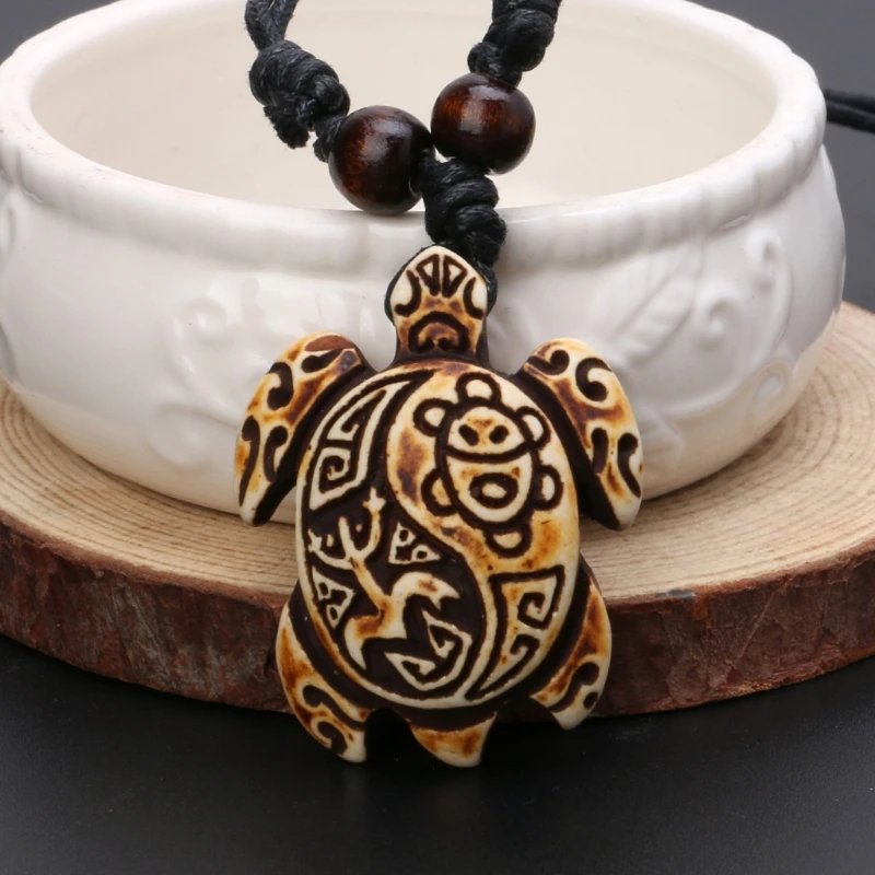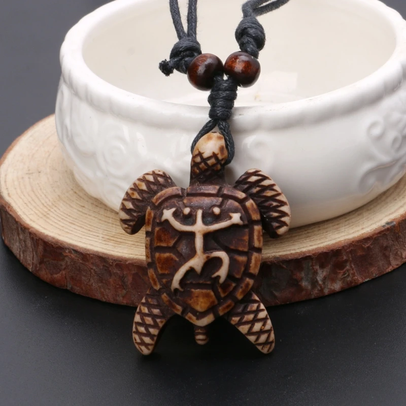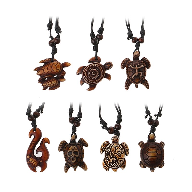 7pcs Ethnic Tribal Faux Yak Bone Lucky Surfing Wood Sea Turtle Pendants Necklace