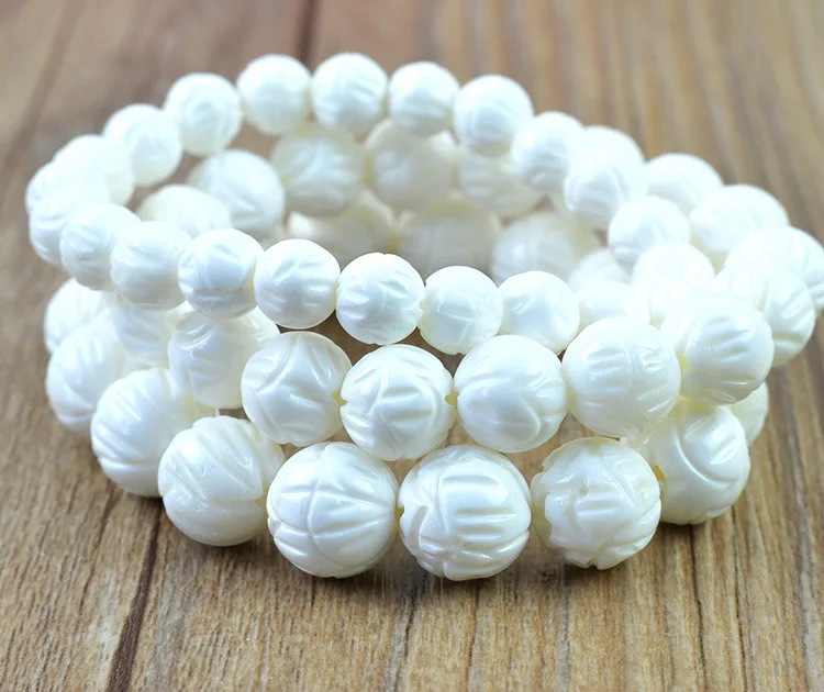 8-12mm Hot deepwater tridacna beads natural lotus white Tridacna bracelet beads enhance immune anti-aging bracelets for women