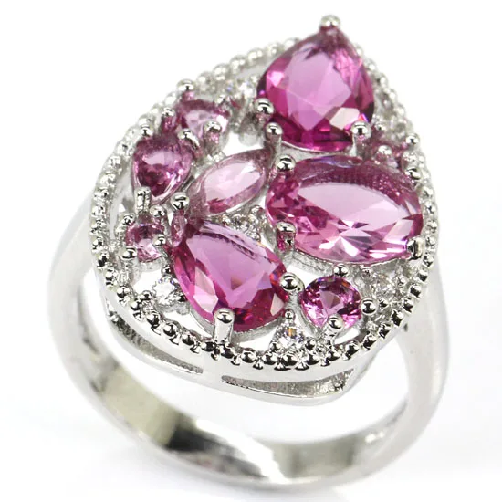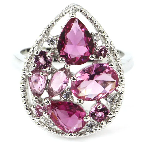 Popular in 2020 Pear Shape Pink Tourmaline White CZ Woman's 925 Silver Ring 23x17mm