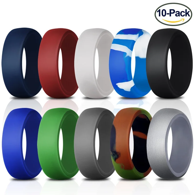 8.7MM 10 Colored Size 7-14 Camouflage Crossfit Flexible Rubber Silicone Ring Wedding Engagement Simple Rings For Men Women