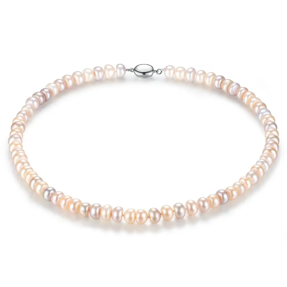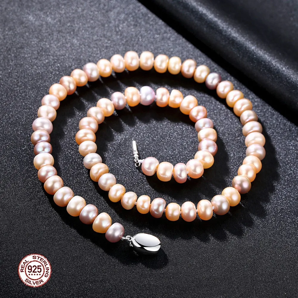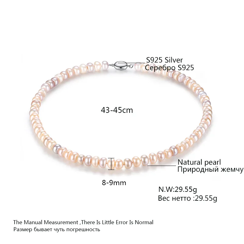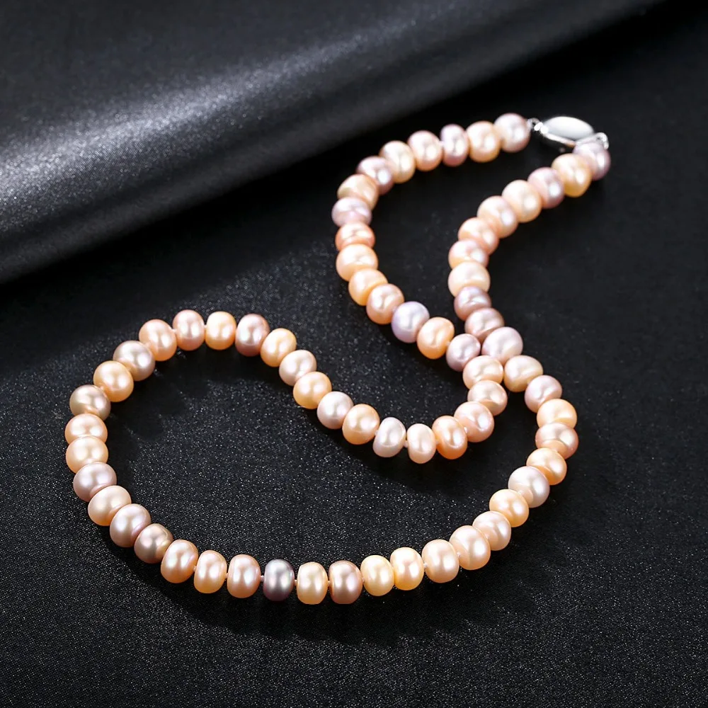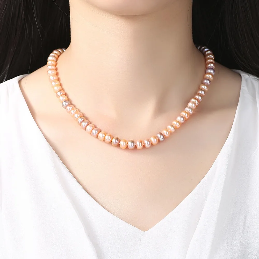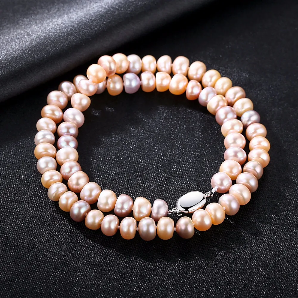 8-9mm Natural Pink+Purple Mix Color Pearl Necklace Single Necklace for Women Beaded Necklace