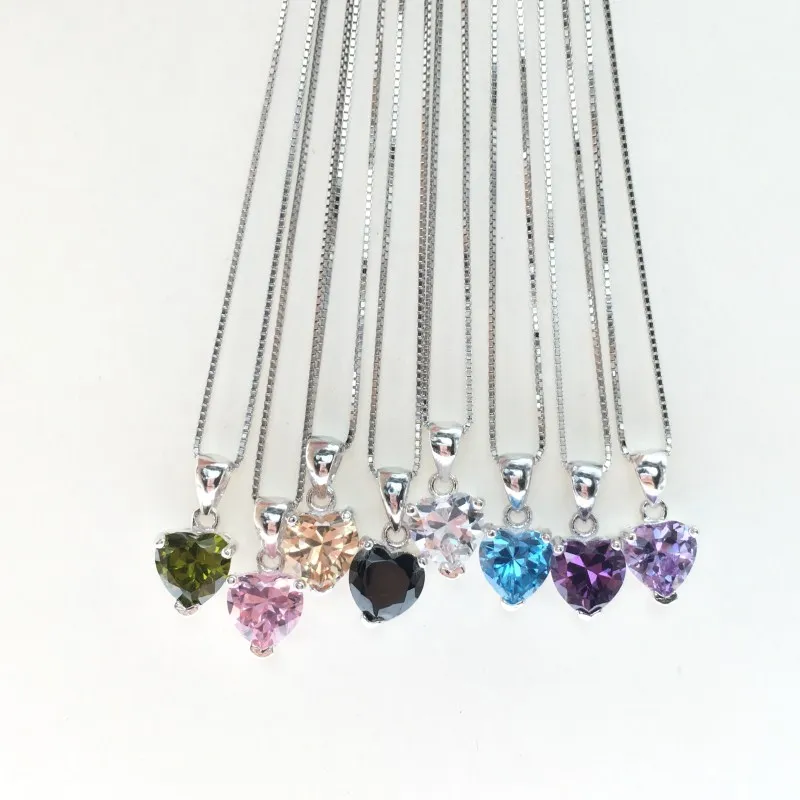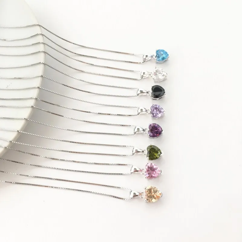 8 Color Heart Love necklaces & pendants For women New Zircon sterling silver jewelry heart pendant best friends Fashion necklace