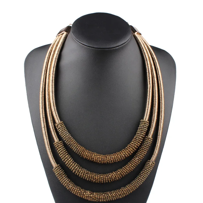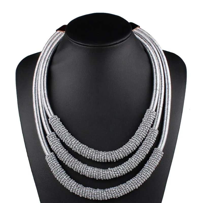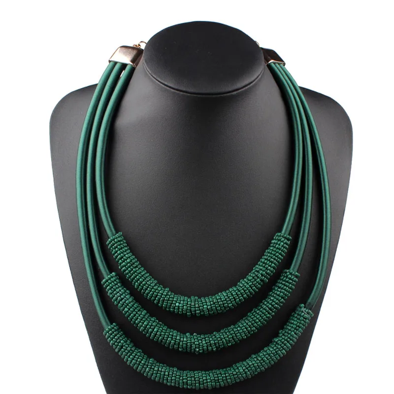 8 Colors Most Popular Women Jewelry Accessories Multi Layer Winding Chain Beads Bib Choker Statement Neccklace for Wedding Party