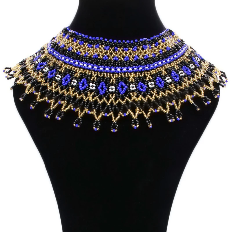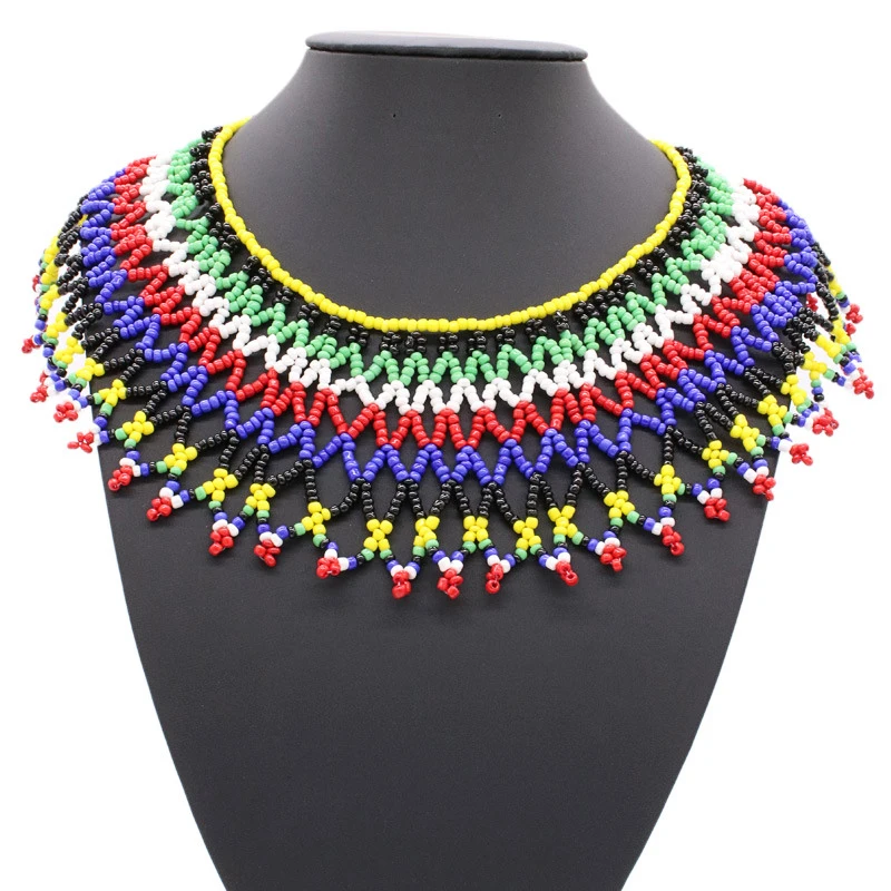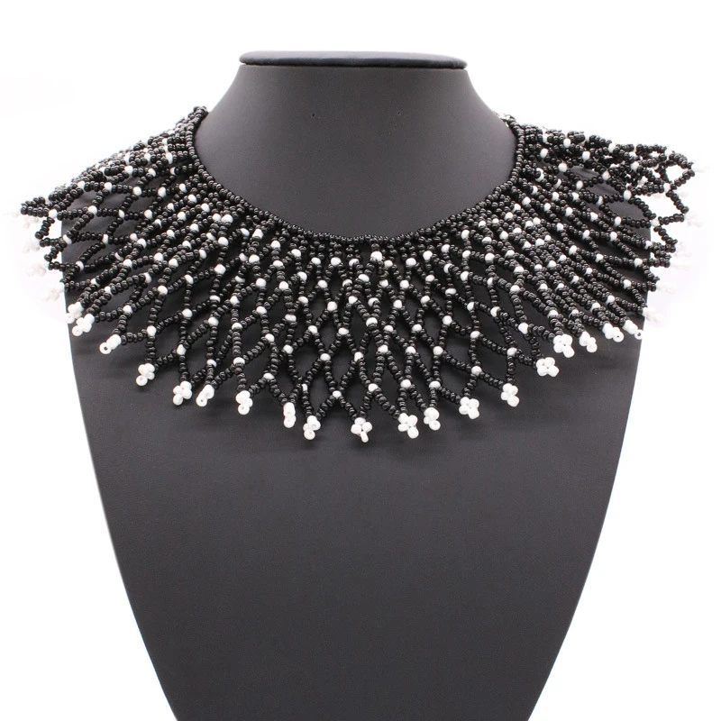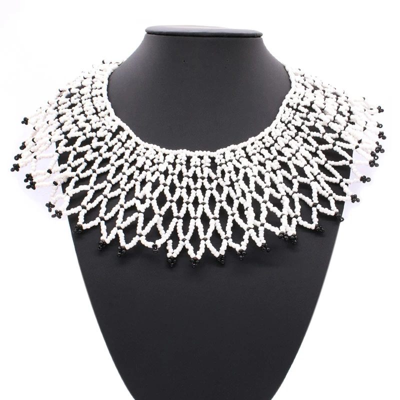 8 Colors Women Jewelry Ethnic Handmade Beads Shawl Style Statement Choker Bib Collar Neckalce for Gift Party