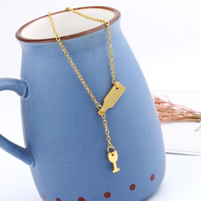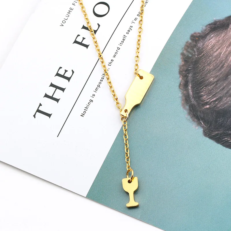 808 STORE Fashion New Wine Bottle Glass Necklace 24k Gold Pendant Necklace Fine Jewelry Wedding Party Jewelry