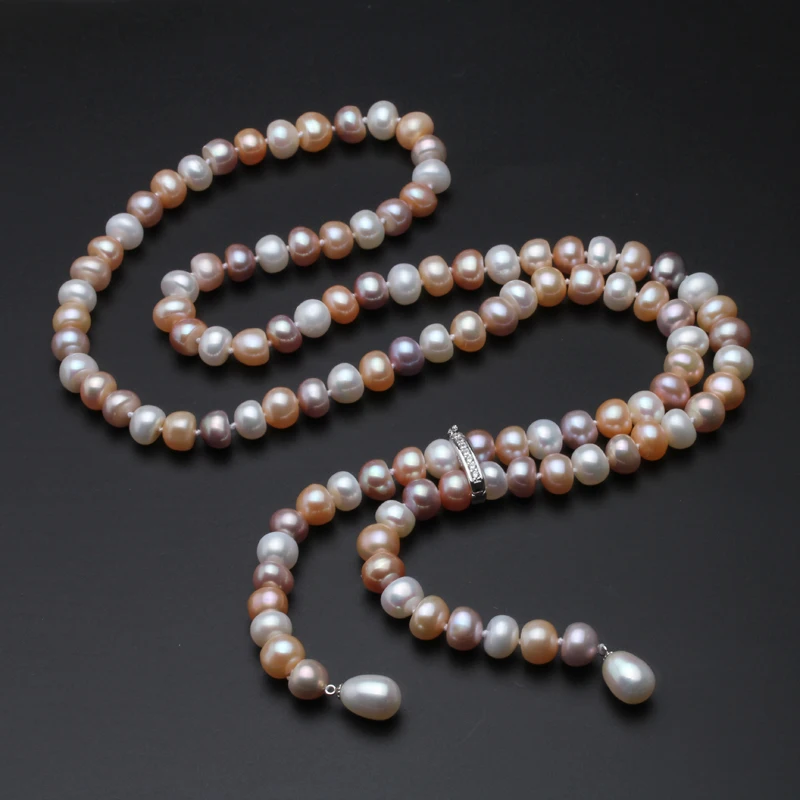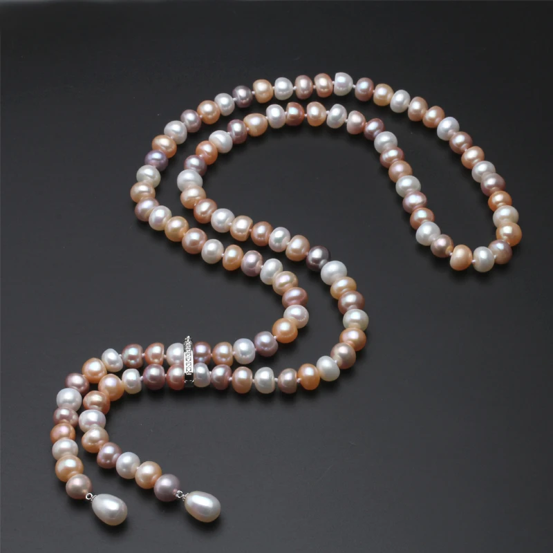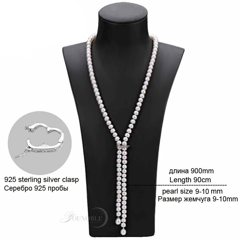 900mm Real long pearl necklace for women,adustable 9-10mm size bridal natural pearl necklace jewelry